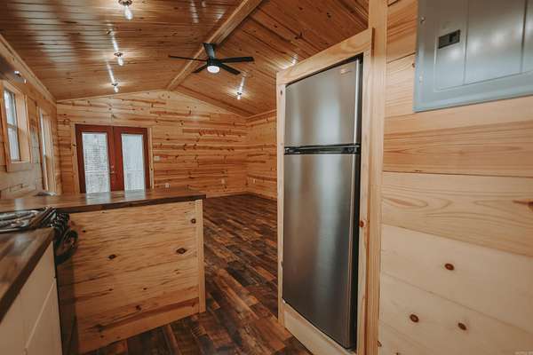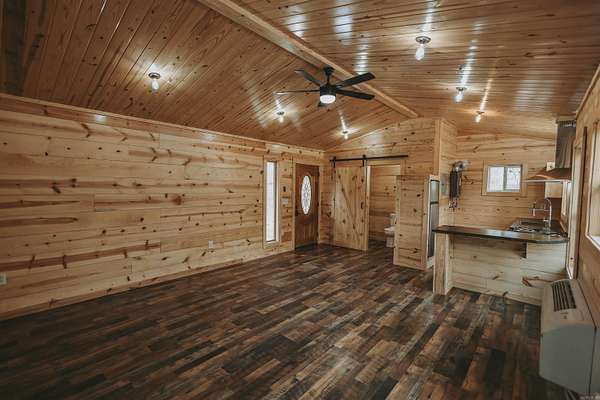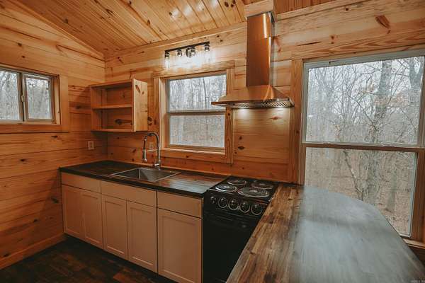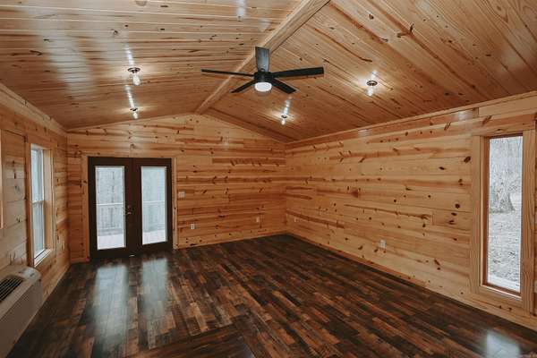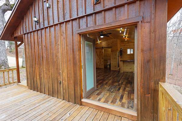 Situated on 2.75+/- acres, this fully finished 16x26 cabin offers a great combination of space and convenience. Enjoy the 104 sq ft open front porch and the 200 sq ft deck, perfect for taking in the natural surroundings. The property is serviced by city water and features 200 amp underground electrical service, providing excellent potential for future expansion. A hiking trail leads directly to adjoining Corps of Engineers land, with Twin Creek running through it. The property borders Corps of Engineers land on one side. Located approximately 3.6 miles from the Twin Creeks boat ramp and recreation area campground, this property provides convenient access to boating, fishing, and other outdoor activities. Completely finished and ready to enjoy, this cabin is suitable as a weekend retreat, investment opportunity, or full-time residence.