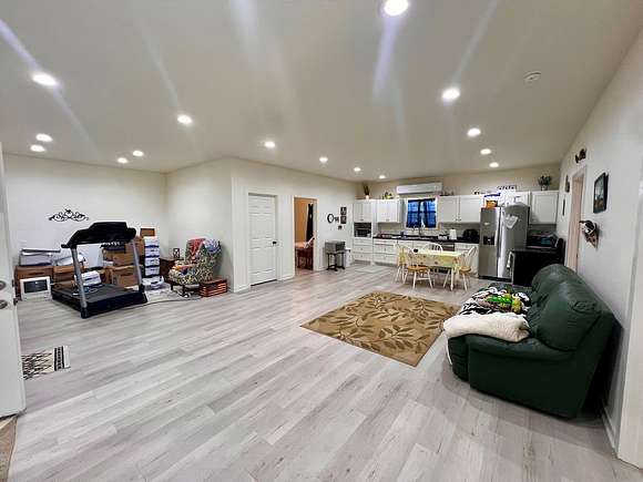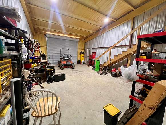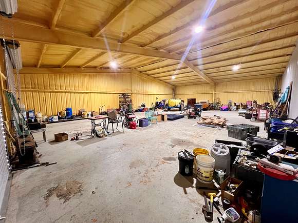 Outside, a spacious covered back porch beckons you to unwind and soak in the tranquility of your surroundings, while a large insulated shop offers additional living quarters with 2 bedrooms and a bathroom, perfect for guests or extended family. Three bay doors, loft storage space, and an enclosed garage provide ample room for vehicles, equipment, and projects, while a covered attached equipment shed offers added convenience for outdoor storage needs.