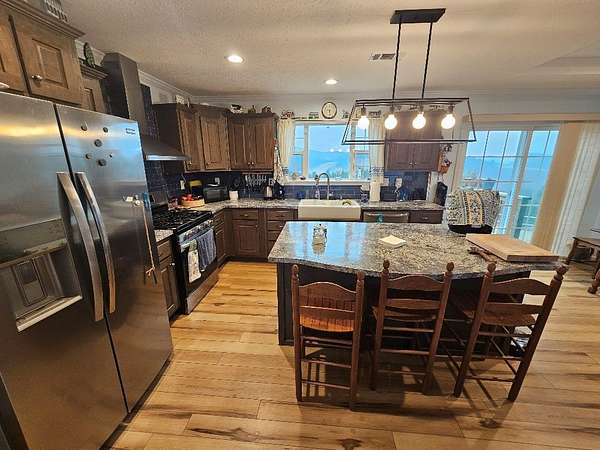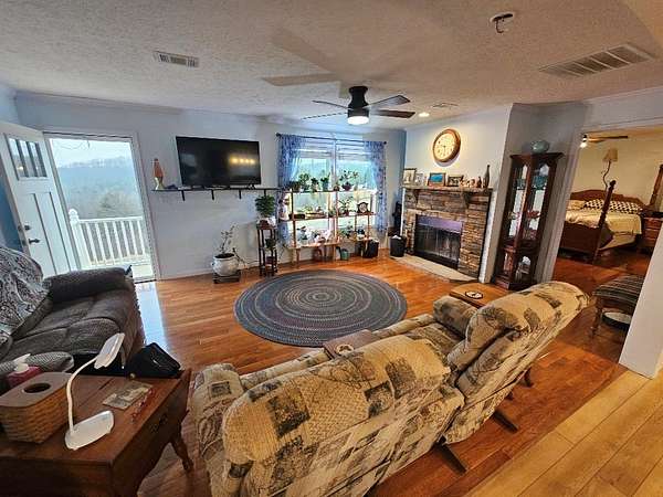 This beautiful 3-bedroom, 2-bath home built in 2024 sits on approximately 7 acres and offers outstanding long-range mountain and country views with privacy. The open living room features a cozy fireplace and flows into a well-appointed kitchen with stainless steel appliances and a center island. The large primary suite includes a walk-in closet and a soaking tub, double vanity, and walk-in shower. Two additional bedrooms provide comfortable space for family or guests. Hardwood and LVP flooring run throughout the home, complemented by a spacious mudroom with sink. Outside, enjoy peaceful country living with a 25x35 garage with electric and water, a 15x30 barn, fenced areas, and a riding ring. Ideally located near Little River and the New River, with convenient access to Sparta, NC and Galax, VA, this property offers a nice blend of modern comfort and rural charm. Call Today!