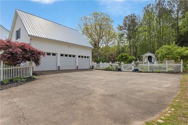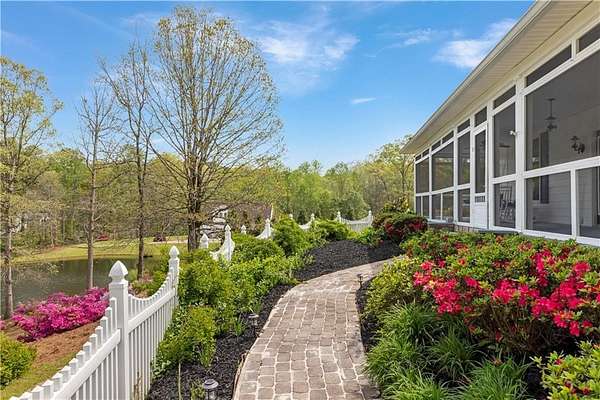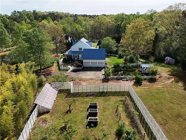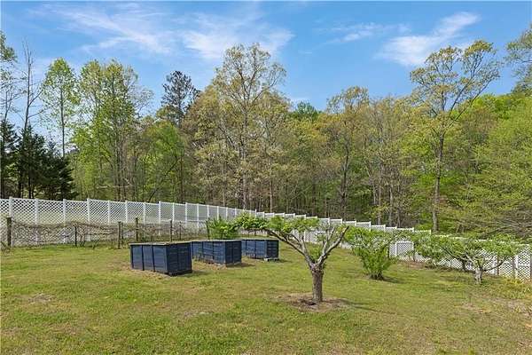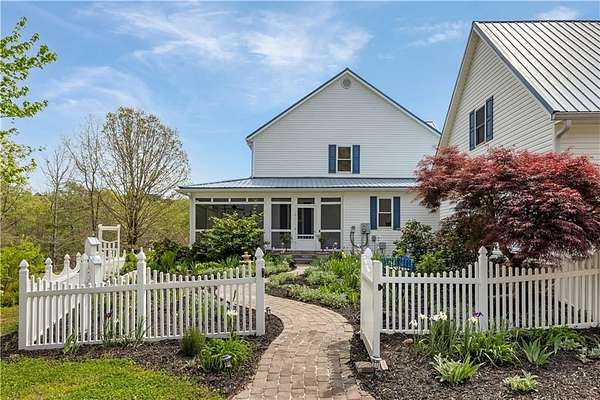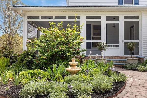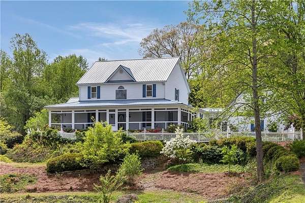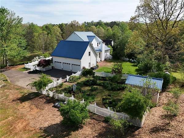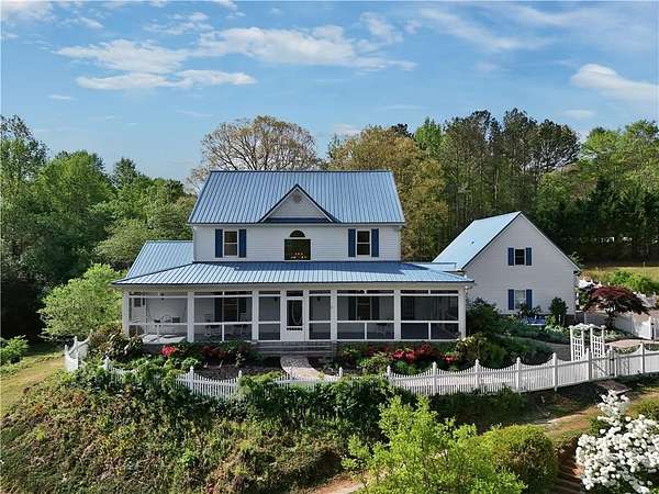Imagine waking to the gentle splash of a fountain on your own 1-acre stocked pond, sunlight dancing across the water, while vibrant azaleas and mature hardwoods frame a picture-perfect view from every window. Welcome to 195 Forest Glen Drive - a rare 4-acre Waleska estate that masterfully blends timeless Southern charm and modern self-sufficiency. Perched on a beautifully terraced hilltop, this striking white farmhouse with its gleaming metal roof and expansive wrap-around screened porch is designed for living life outdoors. The grounds are a gardener's dream: lush seasonal landscaping, winding brick pathways, and a fenced fruit orchard ready for your harvest. A fully plumbed and electrified potting shed and chicken coop make hobby farming seamless and fun. Inside, thoughtful design shines with a main-level primary suite that offers single-story convenience without sacrificing space. The three-car garage with finished space above provides room for vehicles, toys, or workshop dreams. Energy independence is built in with solar panels and a whole-home generator - power stays on while your utility bills stay low. Whether you're raising a family, seeking a peaceful retirement retreat, or building the ultimate modern homestead, this property delivers it all: serene water views, room to roam, and every practical luxury you could want. From the moment you drive up, you'll feel it - this isn't just a house. It's a lifestyle.