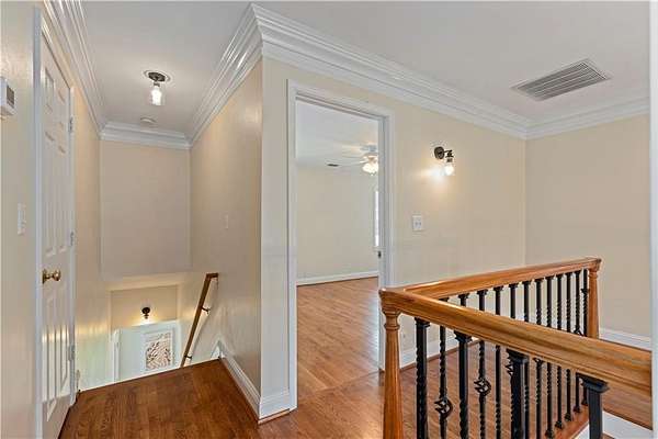 - Bookcases, Crown Molding, Disappearing Attic Stairs, Entrance Foyer, Walk-In Closet(s)