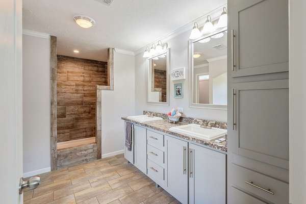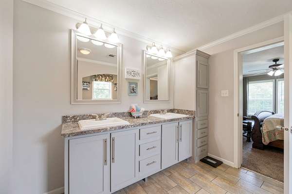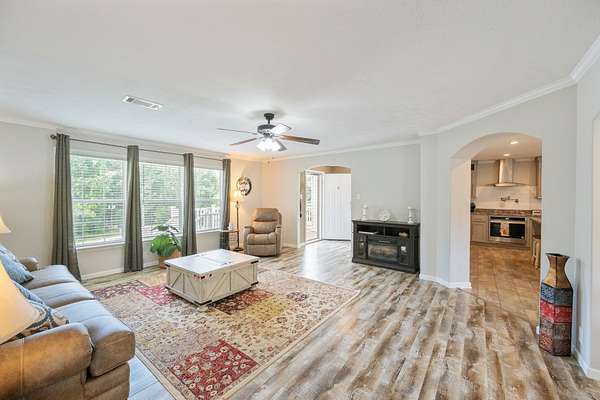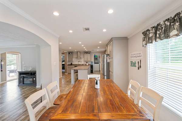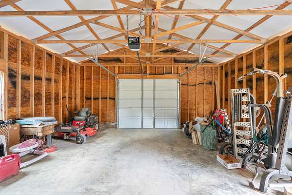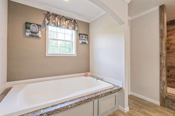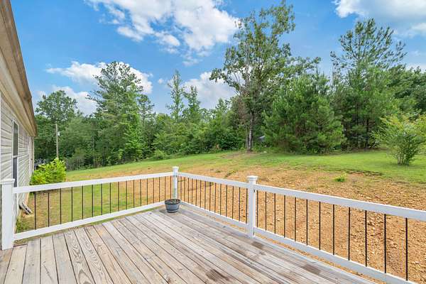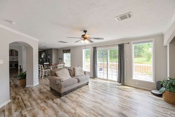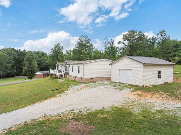 Welcome to this beautiful 2,280 sq ft manufactured home built in 2022, offering 4 bedrooms, 2 bathrooms, and an open floor plan designed for comfortable living. Inside, you'll find a large living room and a separate family room with eye-catching stone accents and automatic shades. The kitchen is a standout with stainless steel appliances, a large farm sink, a pot filler, a spacious island, and ample room for a full-size dining table. A separate utility room adds to the home's functionality. The primary suite features a generous walk-in closet and a luxurious bath with a soaking tub, oversized shower, and double vanities. Built with 2x6 exterior walls, 2x4 interior walls, upgraded insulation, and hurricane straps for added peace of mind. Step outside to enjoy a covered front porch and a back deck perfect for relaxing or entertaining. Sitting on nearly 2 acres with road frontage on three sides, the property also includes a 24x24 garage ideal for a shop or parking. A current survey is on file--move-in ready with space, quality, and comfort inside and out!