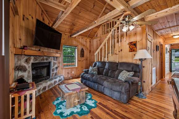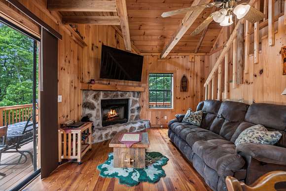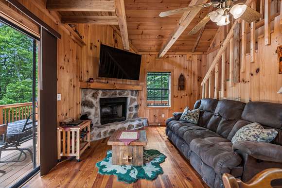 Step outside to take in the breathtaking views from the expansive wrap-around porch and walkout balcony. The open floor plan of the cabin highlights a beautiful stone fireplace, creating a warm and inviting atmosphere, perfect for cozy evenings. Plus, an office/study room with high-speed internet ensures you can stay connected even in this tranquil setting.
