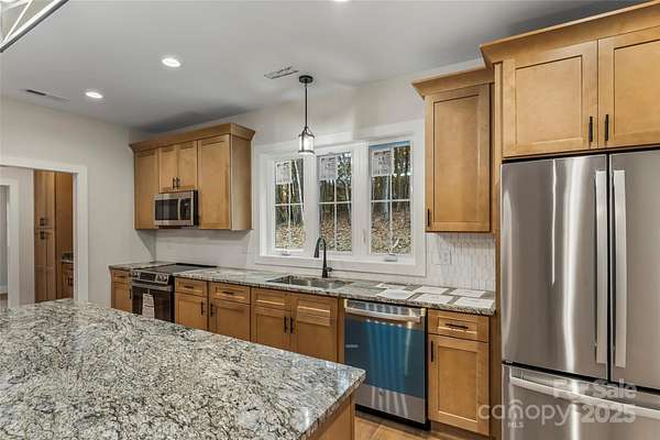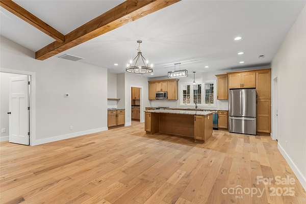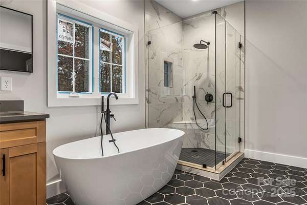 Welcome to 195 Grandview Peaks Drive, a brand-new mountain retreat located in the highly sought-after Grandview Peaks gated community. This 3-bedroom, 2-bathroom home offers 1,788 square feet of thoughtfully designed living space, blending modern comfort with rustic mountain charm. Step inside to an open-concept floor plan featuring a spacious great room with vaulted ceilings, a cozy stone fireplace, and large windows that bring in tons of natural light and sweeping views of the Blue Ridge landscape. The kitchen boasts custom cabinetry, solid-surface countertops, and stainless-steel appliances - perfect for entertaining or quiet nights at home. The primary suite offers a relaxing escape with a walk-in closet and a beautifully finished en-suite bath. Two additional bedrooms provide plenty of space for family, guests, or a home office setup. Outside, enjoy your covered porch or expansive deck surrounded by mature hardwoods and mountain air. Grandview Peaks residents enjoy a private lake for kayaking and fishing, an outdoor fireplace and kitchen pavilion, plus pickleball and shuffleboard courts all within a secure, gated community just minutes from Marion, Morganton, and Lake James. This brand-new home is move-in ready and offers the perfect blend of modern finishes and mountain tranquility.