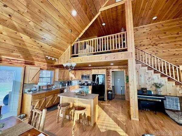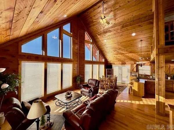 Welcome to Bear Paw Cabin-Western Cedar Log home on the White River! If your Dream Home is a Rustic-Style Log Home in a peaceful River community, look no further! Enjoy the Beauty of the Ozarks along the White River w/gorgeous sunrises & stunning views to enjoy your morning coffee or favorite evening beverage on your brand new deck just watching the River carry your worries away. Plant your fav veggies & flowers in the new raised garden beds & landscaping. New in 2023: stove, micro, disposal, kitchen sink, front & side decks, board-on-board privacy fence. New RGB LED lighting and many new updates & fixtures too numerous to mention. (Owner states property is currently NOT REQUIRED to carry Flood Insurance as it is on back row from the river. )