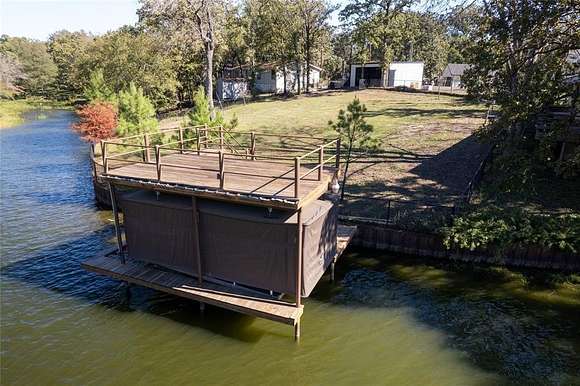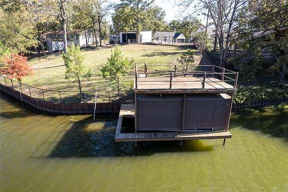 Get a jumpstart on lake living!! This waterfront lot is fenced with new 2023 boathouse and 2 car garage with electric while you build your lake cabin getaway!! Culdesac location in restricted subdivision with boat launch, community park. Great building site with views opening to a cove and southern breezes for summers full of relaxation! Perfect protected water position, tucked just behind a peninsula of open water. Culdesac access with site built custom homes opposite this property. Your home would have sunset views off of the back patio with this West facing proximity. Location is convenient to dining and grocery stores less than 10 minutes away. Touchless cover is excluded.