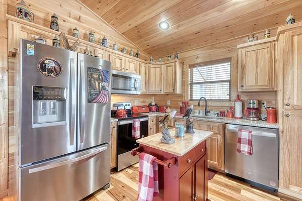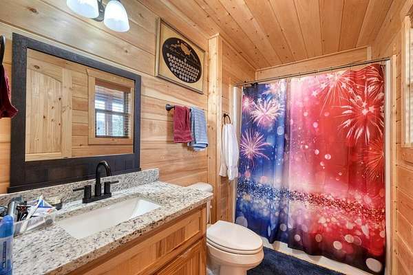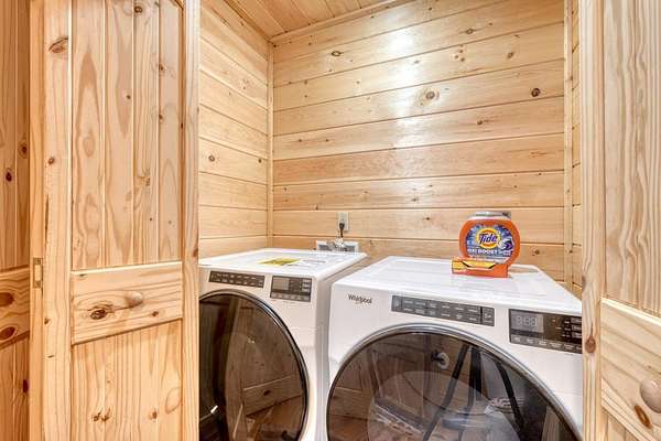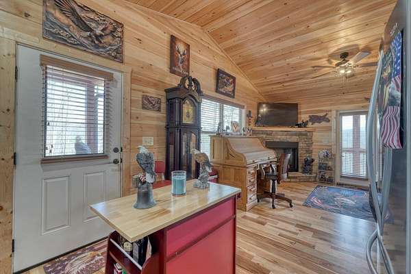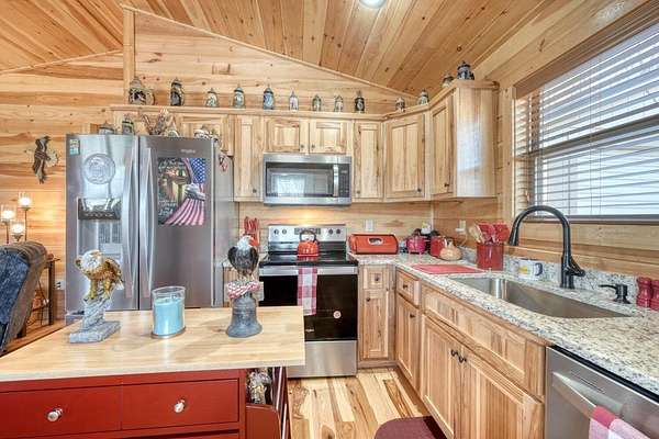- Cathedral Ceiling(s), Ceiling Fan(s), Granite Counters, Laundry On Main, Primary On Main, Vaulted Ceiling(s), Walk-In Closet(s), Washer/Dryer Connection, Wood Ceiling(s), Wood Walls