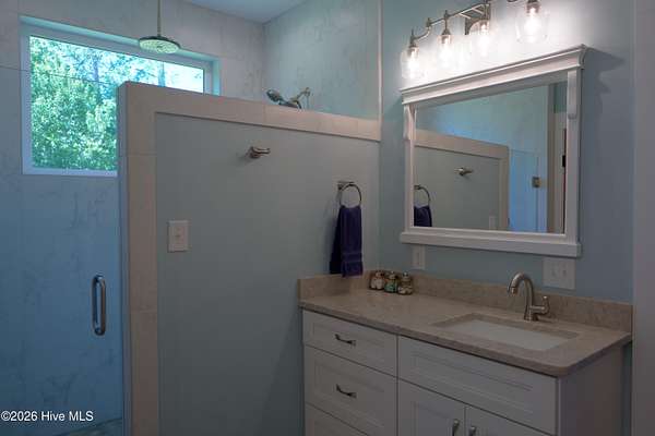 - Blinds/Shades, Ceiling Fan(s), Eat-In Kitchen, Entrance Foyer, High Ceilings, Kitchen Island, Master Downstairs, Mud Room, Pantry, Solid Surface, Tray Ceiling(s), Walk-In Closet(s), Walk-In Shower