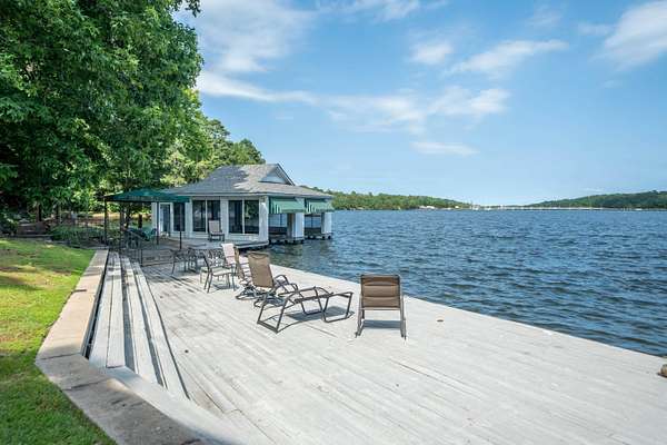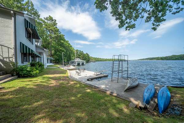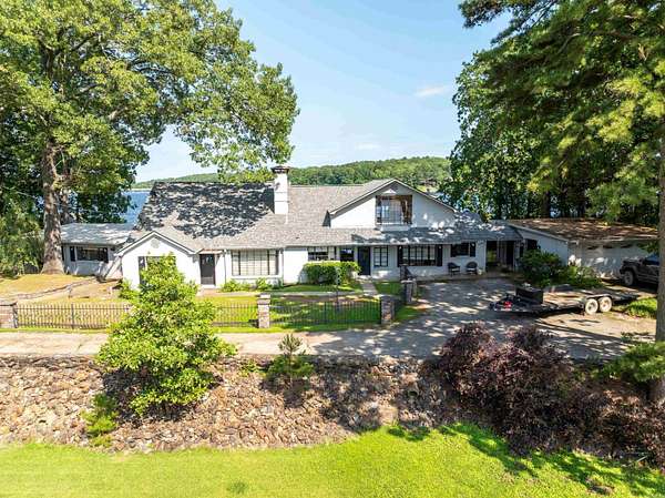 Come see this once-in-a-lifetime property perched on the shores of Lake Hamilton in Hot Springs, Arkansas! Situated on a majestic 2.12-acre point, this extraordinary estate offers unparalleled breathtaking views of sunrises and sunsets on Lake Hamilton's serene waters. Whether sipping your morning coffee or hosting guests for dinner, you will be captivated by the natural beauty that is right outside your door. With plenty of area for outdoor living, you can enjoy direct access to the lake with over 1081 feet of waterfront. Recreation and entertainment spaces are abundant with outside decks hovering right over Lake Hamilton. Dive into the serene waters from your own "high dive" board, moor your watercraft, or soak up the sun and take in the spectacular views that stretch for miles. The waterfront boathouse with two private slips is perfect for facilitating easy access to all sorts of water activities, including skiing, fishing, or leisurely cruises to soak up the sun. Spacious interiors abound in the 5-bedroom, 3-bath home, which spans 4992 square feet. Luxury details are evident throughout with vintage finishes and tasteful furnishings that enhance its ambiance. ---->