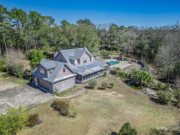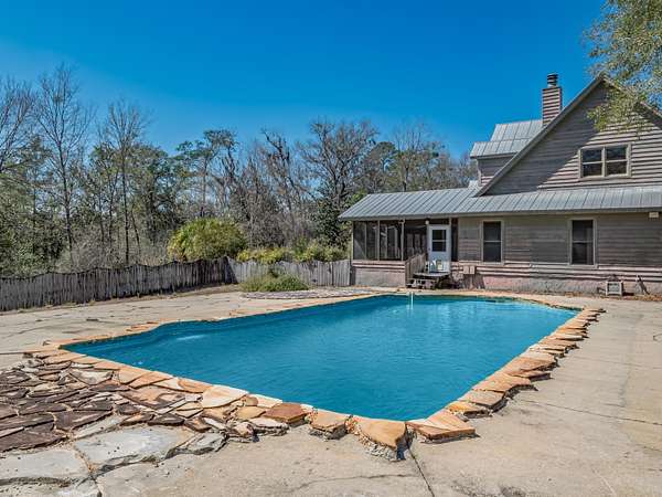 A rare and remarkable riverfront estate on the peaceful banks of the Sopchoppy River. Privately tucked away on 24 park-like acres in the heart of Sopchoppy, this 3,318 sq ft custom country pool home blends the relaxed charm of Old Florida living with refined luxury and thoughtful design. Four separate riverfront parcels combine to offer over 1,300 feet of pristine river frontage and a private walking trail stretching nearly half a mile along the water's edge. On the high side of the river, nearly all of the 24 acres is outside of any flood zone. As you enter through the gated drive, you'll pass open pasture ideal for horses, framed by blooming crape myrtles, gardenias, camellias, and azaleas-setting the tone for the natural beauty that defines this property. The main residence features 3 bedrooms and 3.5 baths, plus a versatile bonus room over the garage perfect for a home office, guest suite, or media room. The downstairs primary suite is a true retreat, complete with a stunning stone fireplace. The chef's kitchen is designed to impress, offering generous workspace and premium finishes for both everyday living and entertaining. A riverfront sunroom captures sweeping views of the manicured lawn and pool area, inviting you to unwind before strolling down to your private floating dock to enjoy the slow-moving river. In addition to the main home, a fully detached garage and workshop provides 1,100 sq ft of open space plus 573 sq ft of heated and cooled space with a full bath-ideal for a guest quarters conversion, studio, home business, or ultimate hobby space. With abundant wildlife, established gardens, expansive pastureland, and ample room for barns, additional homesites, or future expansion, this extraordinary estate offers unmatched privacy and flexibility. Whether you envision a private family compound, equestrian retreat, or serene riverfront sanctuary, this one-of-a-kind property delivers the space, setting, and lifestyle to make it reality.