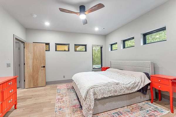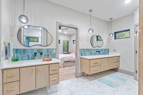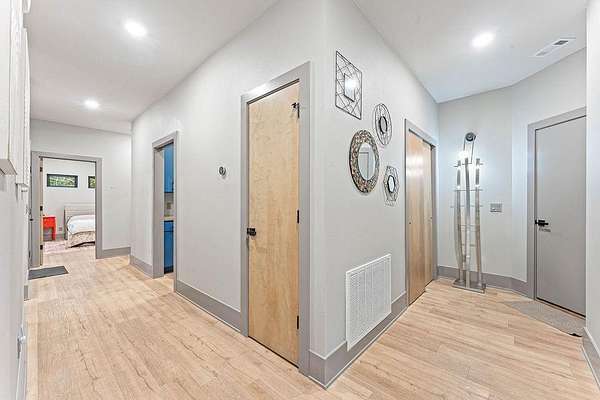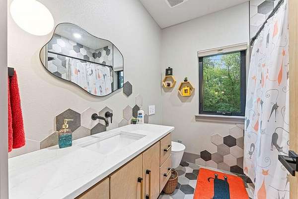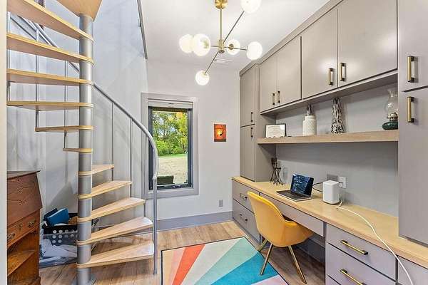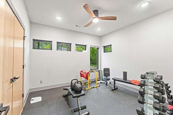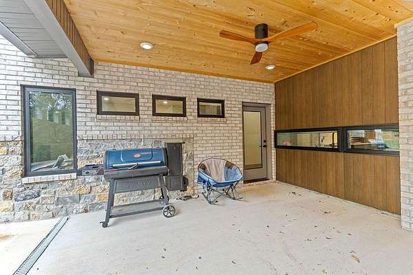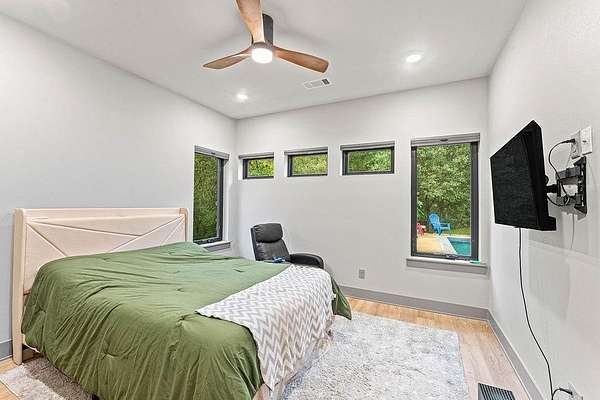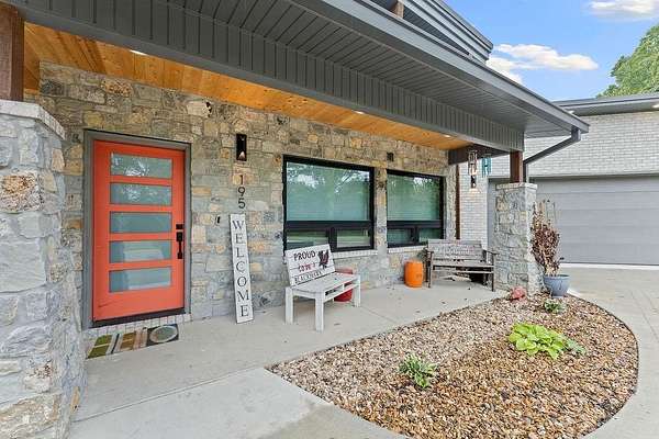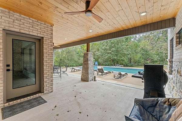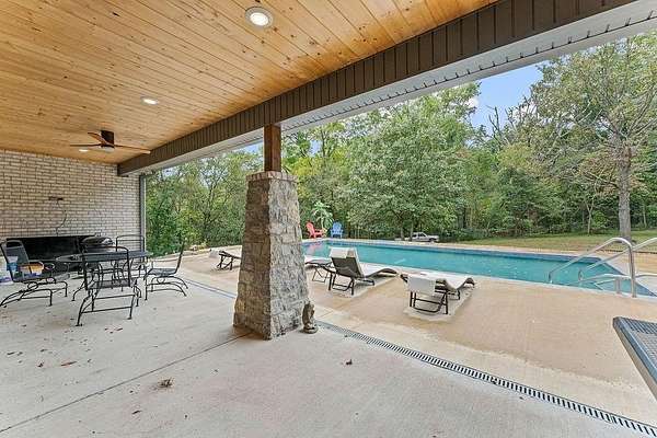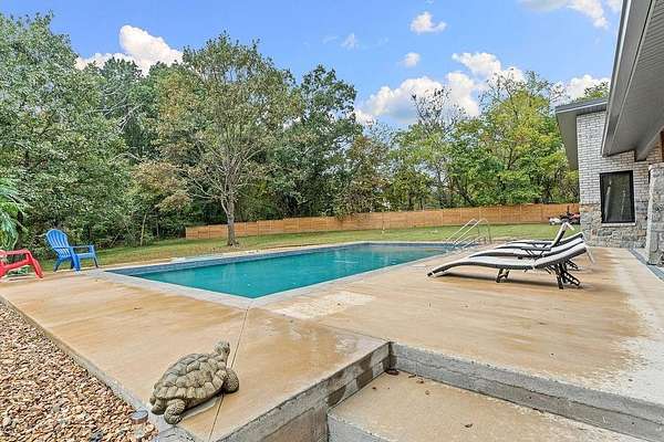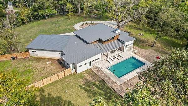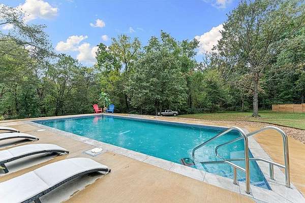 Discover this stunning home on nearly three private acres, perfectly located within walking distance to schools, shopping, restaurants, and more. Featuring 4 bedrooms and 2.5 baths, this home offers spacious walk-in closets, an oversized laundry room with built-in ironing space, and custom touches throughout including sliding barn doors and custom lighting in most rooms. Enjoy remote-control blinds, large windows that fill each room with natural light, and a unique wall art panel that opens to hidden bar closet. Step outside to your private hilltop retreat complete with an in-ground saltwater pool, fire pits for entertaining, and abundant wildlife. Spiral staircase leads to a versatile bonus room, perfect for a home office/game space. The three-car garage includes extra storage closet, and the circle drive adds convenience and curb appeal. Custom cabinetry designed for small pets. This is truly a rare find--a private, serene escape but still in the heart of town.
