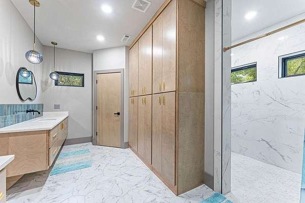 - Attic Storage, Blinds, Built-In Ironing Board, Built-Ins, Cathedral Ceiling, Ceiling Fans, Eat-in-Kitchen, Ice Maker Connection, Pantry, Smoke Detector, Split Floor Plan, Walk-In Closets