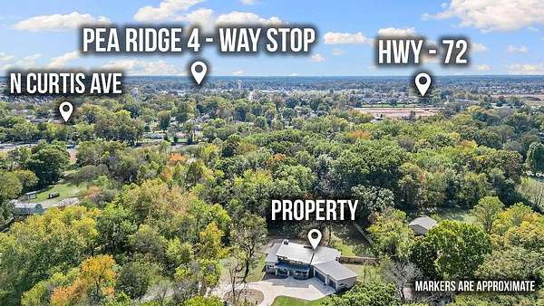 From Pea Ridge Hwy 72 four way, L on Curtis to downtown 4 way, L on Pickens, Driveway on L