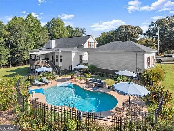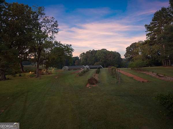 Sims Farm is a homestead where pride of ownership is abundant throughout its 13.80 acres. In this home you will find the perfect mix of convenience & self sustainability! Currently, property is running as a small scale hobby farm and apothecary. Home offers the following: 4 Bedroom 3 1/2 bath, with owner's suite and guest suite located on main, 3 car garage, In-ground pool, Large Laundry Room, & Walk-in Pantry. For the lovers of the great outdoors 13.80 acres provide the perfect mix of clear land and wooded acreage.The wooded part of the land has been carefully cleared of underbrush and riding trails have been carefully carved to provide access to every part of the land. Last but not least, two deer stands have been strategically placed in the woods for either hunting or just to watch the wildlife. The open/clear land has established food growing plots, two 16x60 greenhouses with dedicated irrigation lines and THREE wells. NINE very well established beehives. A 600 sqf building that now functions as an apothecary shop with 1/2 bath and outdoor shower. A very solid gorgeous WW1 Barn, 2 chicken coops with established laying flocks. Property has access via TWO roads and is less than 30 minutes from Gainesville & Jefferson, 40 minutes to Athens & 75 minutes to Atlanta.