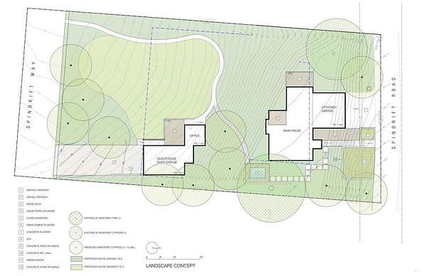 This half-acre property has a well and approvals for a 3600 sf main house on the upper pad and a garden guesthouse/home office or ADU with its own garage accessed from the private drive below. The property enjoys a private access to Yankee Point Beach, a two-minute walk from the lower edge of the property. It also fronts on a scenic easement across Spindrift Road, affording unexpected privacy. The main house captures ocean views from every room. Three levels are organized around a central stair culminating on the top living level with panoramic and white water views. High windows bring in light and nature, and terraces at each level extend the outdoor enjoyment of this multi-faceted setting. The combination of views and beach access, coupled with distinctive contemporary architecture by award-winning architect, Frank Hennessy, make this property unique. For those wanting a custom home in one of the most desirable neighborhoods on the Monterey Peninsula, this property has all planning and coastal approvals in place and is ready to be adapted and finished to suit.