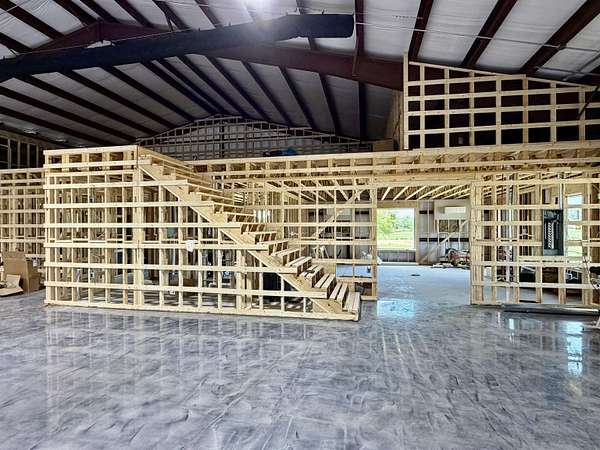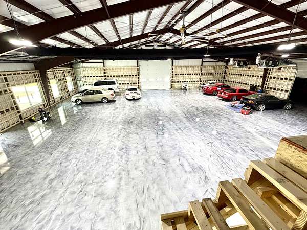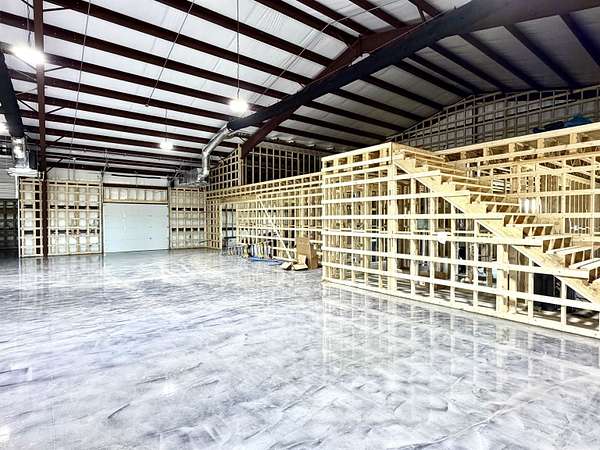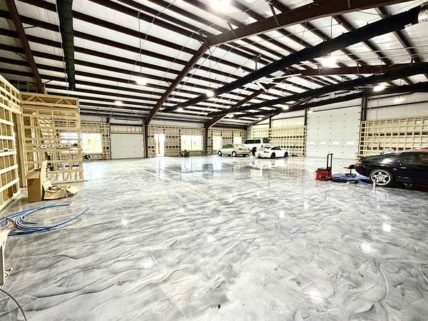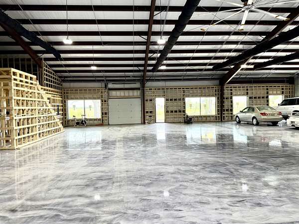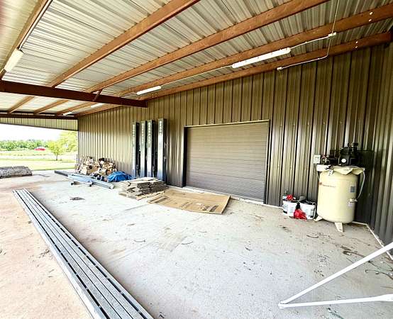 Unbelievable opportunity for this 8,600 sq.ft Mueller building that could be a perfect barndominium! Spacious framed finished space measuring 80 x 24. The framed finished space is heated and cooled with electricity and plumbing is in place but, will need to be finished. Four zoned central heating and air and an industrial sized fan perfect for those hot days! There is a 30 x 19 paint booth. Beautiful epoxy floors throughout most of the property. Covered front porch is 75 x 20. Back covered porch is 50 x 20. Brand new septic tank system. Extensive concrete work with driveway and additional parking. First parcel is a 5 acre tract. Second parcel is 1.65 acres with parcel #0905160002005011