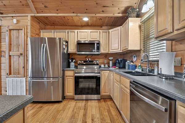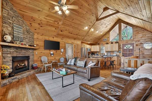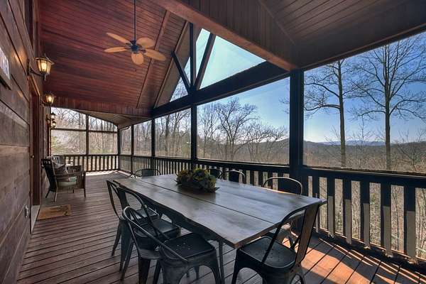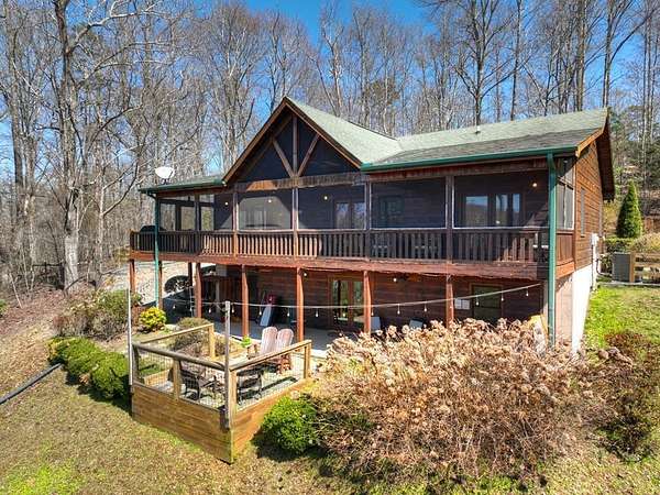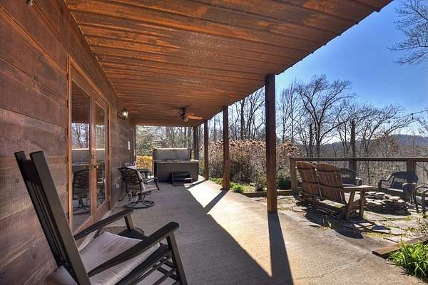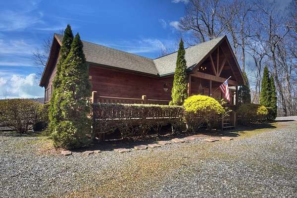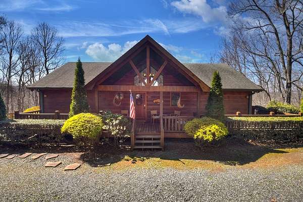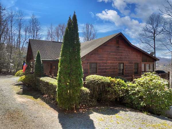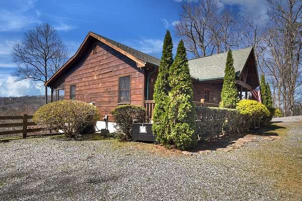 Nestled in the heart of Blue Ridge and & less than five minutes from historic downtown, this inviting 4bedroom + flex room, 3.5 bath cabin offers the perfect blend of mountain charm, privacy, and convenience. Situated on 3 private acres with end of road privacy, the property showcases breathtaking long-range mountain views and a peaceful setting ideal for relaxing or entertaining. Designed for comfort and flexibility, the home features both main-level and terrace-level living, each with its own spacious great room—perfect for hosting guests or creating separate living spaces. With well appointed primary suites & guest rooms there's plenty of room to comfortably accommodate family and visitors. Inside, you'll find a warm mix of natural wood and drywall, creating a balanced rustic yet refined interior. The home has been well maintained, offering a move-in ready opportunity for its next owner. Currently operating as a successful short-term rental, this property presents excellent income potential while also being ideal for full-time living, a second home, or a weekend getaway. Enjoy the best of Blue Ridge living—privacy, stunning views, and quick access to downtown dining, shopping, and outdoor adventures—all from your own mountain retreat. Tastefully furnished and excellent curb appeal with lovely outdoor entertainment areas, hot tub and fire pit, plentiful parking & mostly paved access...it's a must see!