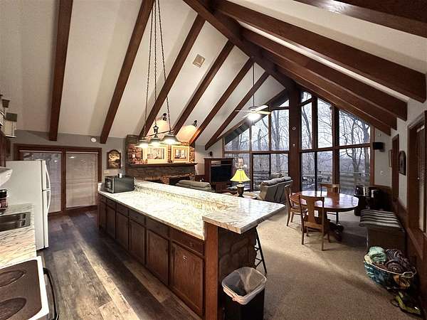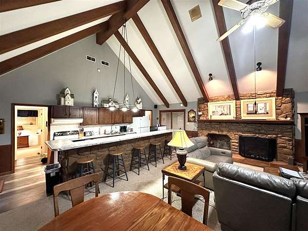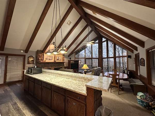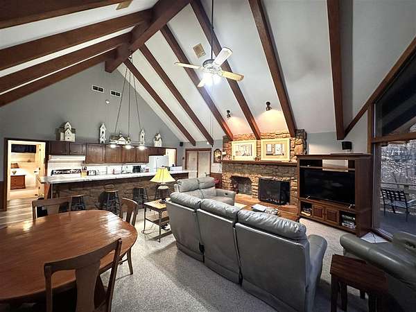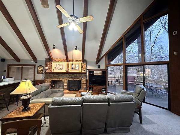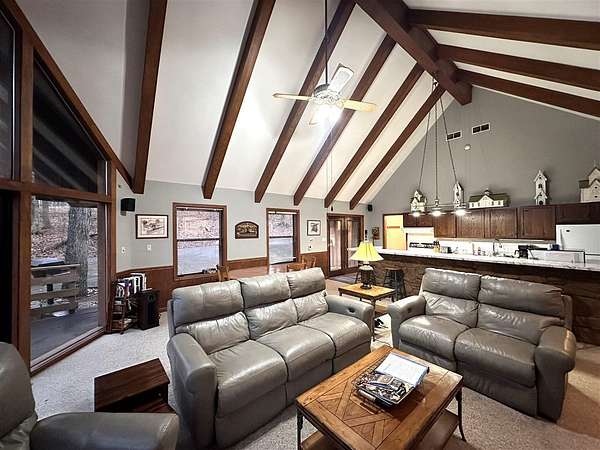 This Wonderful Lake Home at Barren River Lake checks all the boxes. It is Lake Front, with Lake View and has 2, YES 2 BOAT SLIPS!! This is a very rare feature. It also is a total of 3 separate lots!! Tucked away, yet easily accessible, this home features a HUGE open great room so no one misses the fun! You will immediately love the soaring vaulted exposed beam ceilings, stone fireplace, the expansive kitchen bar and will fall in love with the view from wall of windows overlooking the large deck and facing the lake. The home also features 3 bedrooms and 2 fully remodeled baths. You will greatly appreciate this location, both from land and from water. This home is literally only 25 minutes from I-65 in Bowling Green. It is also one of the best locations on the water being in a cove just off the largest body of water in the lake. Lake access is right out the back door down your private walk directly to the water. This has been an active short-term rental (Airbnb). This one has it all!!