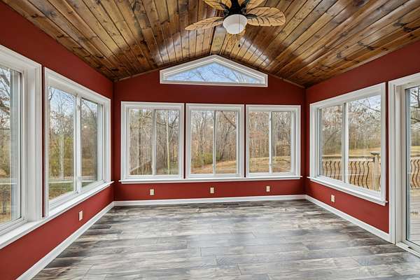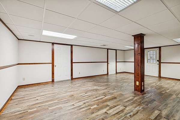 Welcome home to this classic all-brick 3-bedroom, 3-bath ranch nestled on 3 peaceful acres. Fresh paint, brand-new LVP flooring and newer insulated windows make this home ready for immediate enjoyment. Relax in the sun-filled den or step out onto the deck to take in serene wooded views of the private backyard. The spacious 26' x 18' lower-level recreation room is ideal for entertaining and includes a full bath. A 24' x 18' workshop/garage with overhead door adds incredible flexibility, all complemented by a main-level two-car garage with direct access to the kitchen and the entire the main level living space