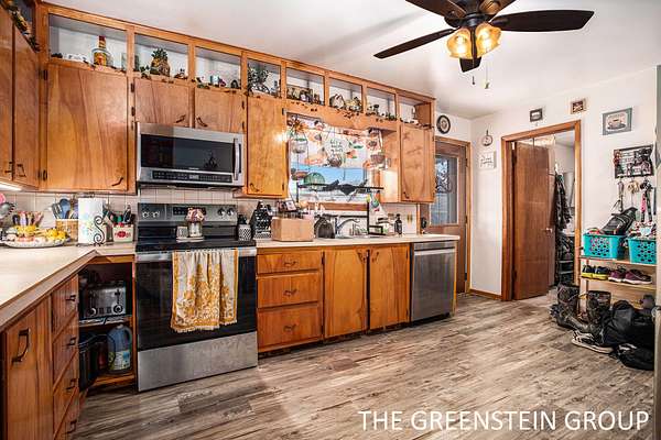 Discover the perfect blend of country living and modern convenience at 1950 E Dowling Road. Situated on 1.5 peaceful acres, this charming farmhouse-style home offers three main-floor bedrooms plus an additional non-conforming room upstairs-ideal for guests, an office, or extra storage. The spacious kitchen features abundant cabinetry along with newer stainless steel appliances, providing both style and functionality. Outside, hobbyists and professionals alike will appreciate the two impressive pole barns. One barn offers electric, water, heat, and insulation-excellent for year-round projects or workshop use. The second barn includes electric and a hydraulic car lift with newly poured, extra-thick concrete footings, making it a standout option for auto enthusiasts or small business needs. With ample space, valuable outbuildings, and a warm farmhouse feel, this property delivers endless potential in a desirable Hastings location and is priced to sell. Schedule your showing today!