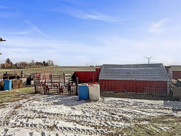 Looking for your own private piece of paradise? This 1,968 sqft, 2 story home offers 4 bedrooms and 3 bathrooms, providing plenty of space and comfort, all situated on 7.28 scenic acres with multiple outbuildings. Step inside through the enclosed front porch-an ideal drop zone for shoes, jackets, and bags-before entering the spacious, updated kitchen and dining area. Just off the kitchen is a formal dining room showcasing beautiful hard wood floors, which flows seamlessly into the inviting living room. The main level is complete with a bathroom/laundry room and an additional office or storage room. Upstairs, you'll find four generously sized bedrooms and a full bathroom. The home also features a full basement, perfect for extra storage or future possibilities. Outside, the 7.28-acre setting offers wide-open space, privacy, and picturesque rural views. There is a two stall detached garage and multiple livestock buildings make this property ideal for hobby farming, 4-H projects, or anyone looking to enjoy country living with animals. There's ample room for pasture, gardens, or outdoor recreational while remaining conveniently close to town. This is a rare acreage opportunity offering size, space, and versatility.