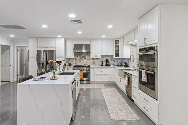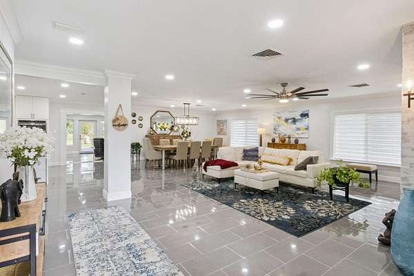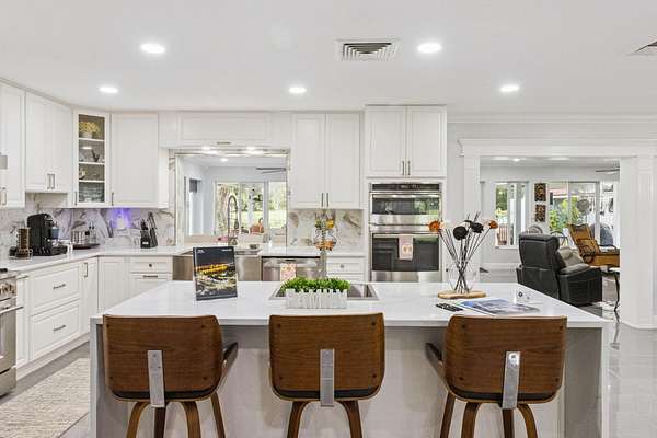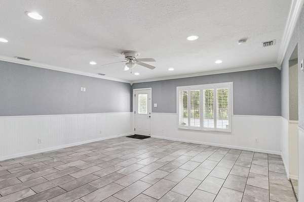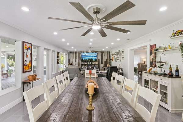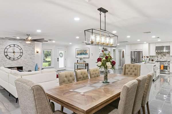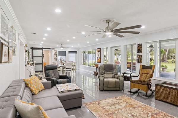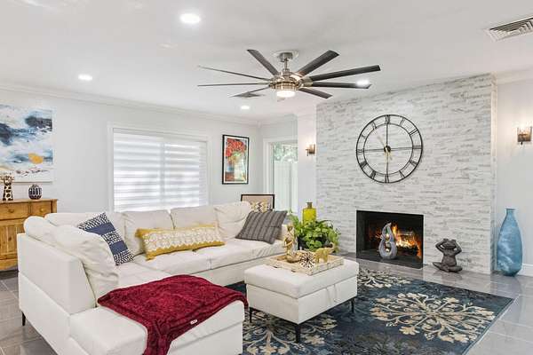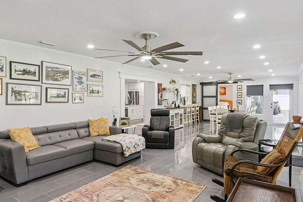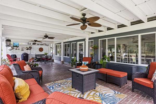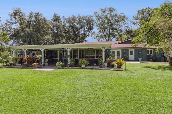Your private country estate on nearly 3 acres is waiting! Offered fully furnished, a beautifully updated 4-bed, 2.5-bath home with a spacious great room, stone fireplace, crown molding, and a chef's kitchen featuring GE Profile stainless appliances, Forno 6-burner gas range, and beverage center. A large flex room with kitchenette is ideal for an in-law suite, home office, or ADU. Enjoy two detached garages -- a single-car and a large workshop/RV garage with car lift. Recent updates include roof (2017) with 2025 maintenance, dual 4-ton A/C units plus separate unit for bonus room, solar attic fans, tankless water heater, dual wells, and a Leaf Filter gutter system. Relax on the 16'*40' porch surrounded by mature trees and privacy. Minutes to schools, shopping, and I-4 this property blends modern efficiency with country and quiet tranquility!
