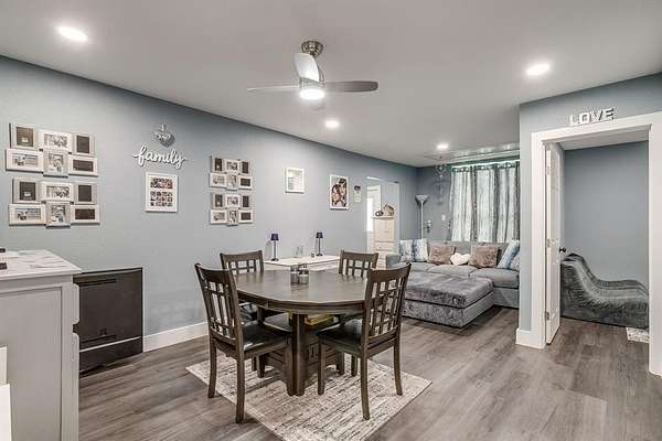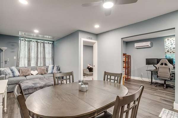 The open-concept living and dining area provides a comfortable space for everyday living and hosting. Outside, the property features multiple outbuildings, including: Several buildings or workshops with electricity. The other smaller buildings could be fixed up and used as a child's play house!