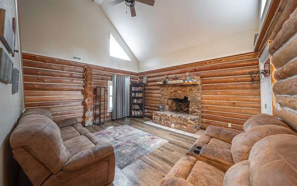 Discover Missouri living with this stunning 4-bedroom, 2.5-bath, 3,200+ sq.ft. log cabin situated on 123 m/l acres of wooded land. This impressive two-story home blends rustic charm with expansive space, offering a warm lodge-style atmosphere and plenty of room for family, guests, or entertaining. Step outside and enjoy the incredible recreation opportunities this property provides. This property hosts a heathy population of whitetail deer and turkey, it’s a hunter’s paradise. The land features rolling timber and trails, perfect for exploring, hiking, riding, or simply enjoying the peace of nature. Just a short walk from the home sits a private stocked lake, offering a great place to relax, fish, or take in the sunset. A 2-bay shop provides excellent storage for equipment or UTVs, and can easily serve as a workspace or parking area. Whether you’re seeking a private getaway, a hunting retreat, or a full-time home surrounded by nature, this property delivers the space, seclusion, and beauty you’ve been looking for. Property is located approximately 5 miles from St. Joe State Park and just over an hour from St. Louis.