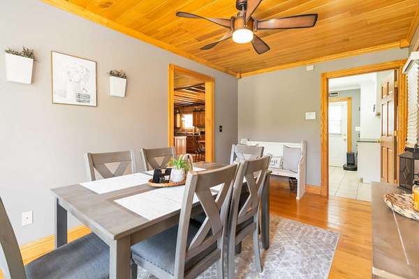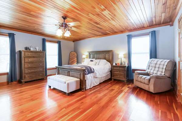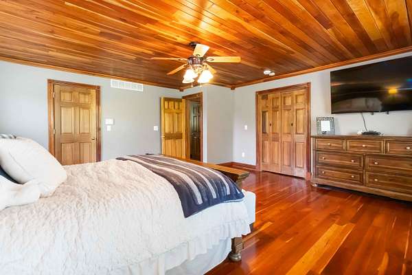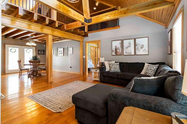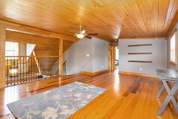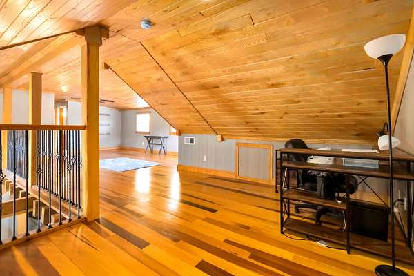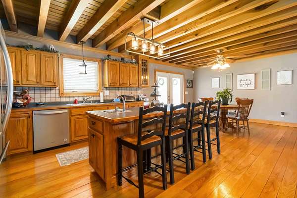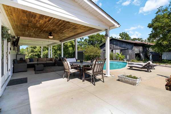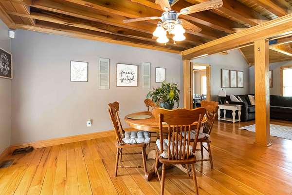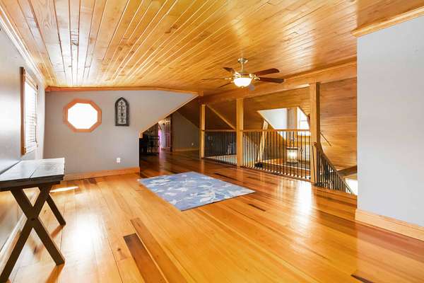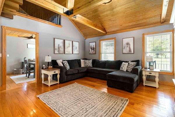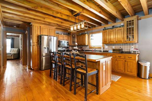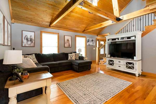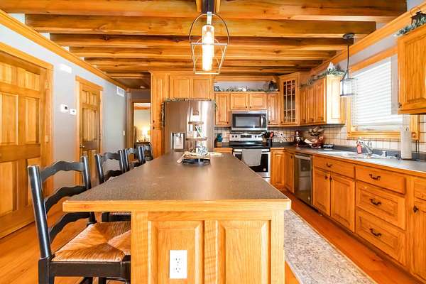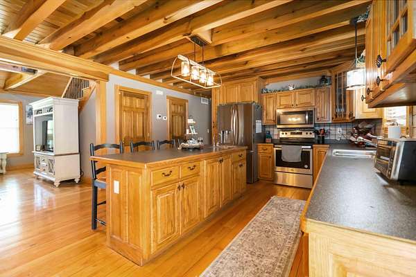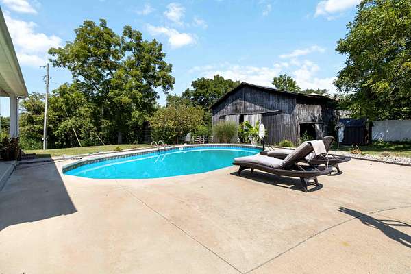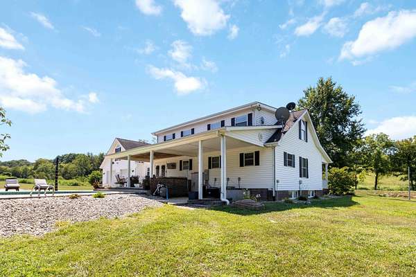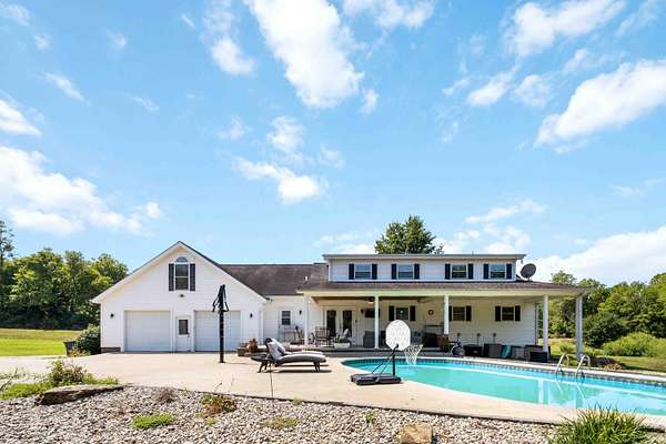 Custom-Built Home on 2.7 Acres with In-Ground Pool, 2 car Attached Garage, and a Creek! This stunning custom-built home offers a perfect blend of charm and functionality in a peaceful country setting. Featuring custom wood floors & ceilings, this home's unique craftsmanship is sure to impress.The main floor includes a spacious living room, a kitchen with a large island & bar sink, ample pantry space, a primary suite with a whirlpool tub & walk-in closet, an additional full bath, a utility room, and a flexible dining area and home office space. Upstairs, offers beautiful views of the main floor and enjoy a loft-style home office, two bedrooms, a full bath, and a bonus room. The spacious full finished basement features two bedrooms, a full bath, and a large family room, kitchenette, & large storage room. Step outside to enjoy the covered back patio leading to the in-ground pool, large barn, large carport thats perfect for boat/camper storage and on the covered front porch, the serene creek on your property. A rare find-don't miss out! 1 yr home warranty at closing with full price offer. Schedule your showing today!