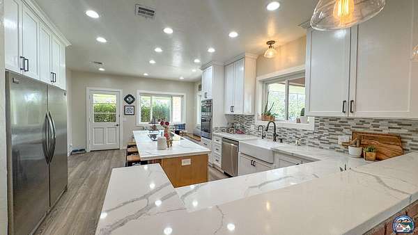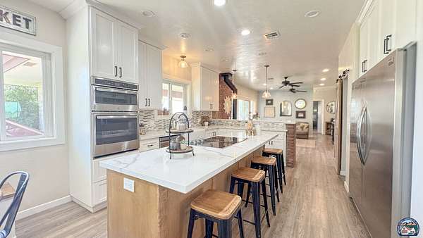 Welcome to 1953 Bowker Rd, El Centro A Rare Country Retreat Spacious 5-bedroom, 4-bath home offering approx. 5,062 sq. ft. of living space on over 3 acres combined. The main level features a formal living and dining room, a fully updated kitchen with quartz counters, new cabinetry, full fridge/freezer, walk-in pantry, and three bedrooms including the primary suite. The finished basement provides two additional bedrooms, a full bath, and a large versatile bonus area ideal for a gym, theater, or hobby space. Outdoor amenities include a full basketball/sport court, a 3,200 sq. ft. barn/workshop with electrical and water, air-conditioned tack room, and wash racks perfect for projects, storage, or livestock/4-H use. A detached 1,300 sq. ft. ADU with bathroom offers flexibility for extended family, guests, or potential rental income. This unique property blends updated living spaces with ample land, making it ideal for privacy, recreation, and multi-generational living.