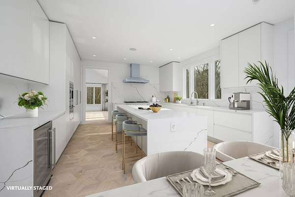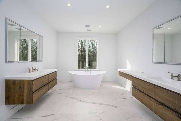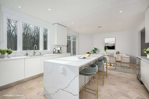 Experience refined Hamptons luxury in this stunning Water Mill estate on 3.3 secluded acres. A recently completed ground-up gut renovation transformed this home to modern day living. Arrive by a long winding drive to this hilltop estate that includes a fully finished walkout lower level. Clad in classic Hamptons style with cedar- shake siding, this 7,900+/- sq. ft. home has 7 bedrooms, 7.5 baths, an attached 2-car garage, a large pool, and room for tennis. The spacious living room captivates with its tall arched ceilings, a dramatic wood-burning fireplace, and clerestory windows illuminating the space with natural light. The pristine kitchen is a culinary dream featuring premium appliances, sleek quartz countertops, and a charming breakfast room with direct patio and pool access. The main level has 2 first-level bedrooms- one offering private patio-plus an adjoining den and attached two-car garage. Upstairs, the primary suite is highlighted by its own expansive patio, boutique walk-in closet, cozy fireplace, and a lavish ensuite bath complete with a glass-lined shower. Three additional ensuite bedrooms round out this elegant level. The lower level is ready for year-round Hamptons living with an additional bedroom, full bath, and large space perfect for a home gym, game area, or media room. Outdoors, dine al fresco, and lounge in the sun on the deck or by the sparkling 20'x50' pool. Beautiful landscaping and ample lawn space are ready for games, plus complete your luxury oasis with a private tennis court. Perfectly positioned near picturesque bay beaches, restaurants in Noyac and elevated luxury in Sag Harbor Village, and the Hamptons' famed oceanfront, this residence embodies Hamptons sophistication at its finest.