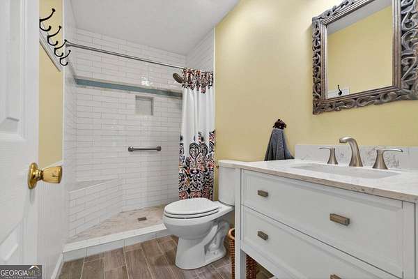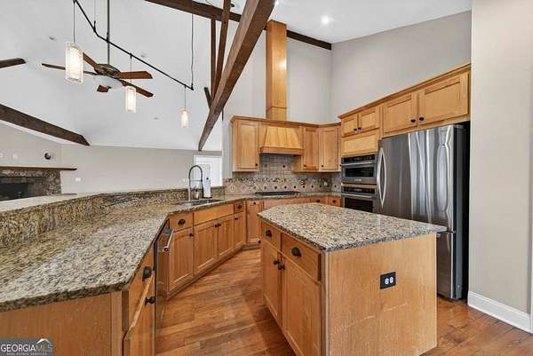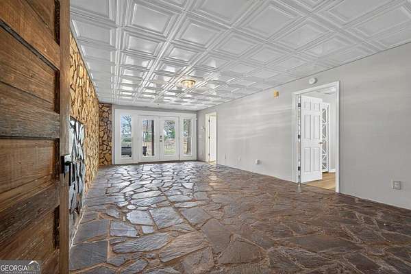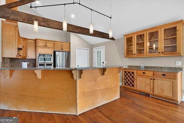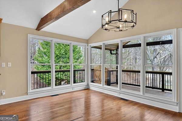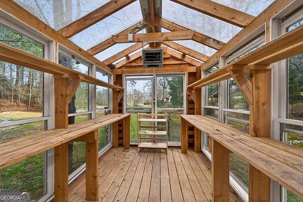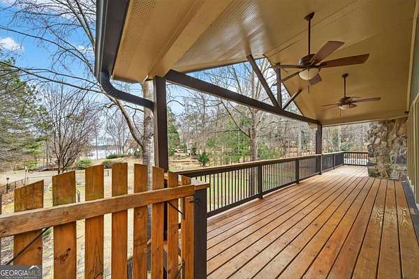 If you're looking for peace and quiet with privacy mixed in on Lake Oconee for under a million dollars with good water, you've just found it! This estate-style property sits on over 2 acres of land in pristine Morgan County, just a short drive to beautiful downtown Madison and only a few country songs away from the heart of Lake Oconee restaurants and shopping. Immediately upon entering the home, you will be captivated by the abundance of windows, natural light, and open-concept living. The chef's kitchen stands out with premium appliances, beautiful wood cabinetry, granite countertops, an open dining area, and a separate bar, making this an ideal setup for entertaining guests. The spacious living room is showcased with custom beams, hardwood floors, a grand fireplace, and vaulted ceilings, all focused around the beauty and elegance the abundance of windows provide. The primary suite has its own separate wing of the house, separated by a hallway that also has access to the porch. The bedroom is very spacious and has plenty of windows overlooking the lake and backyard. The ensuite bathroom features a huge walk-in tile shower, a soaking tub, his-and-hers closets, and a private laundry room in between. Additionally, on the main level of the home, you have three guest bedrooms with two full bathrooms, one being a suite with a private bath. The finished terrace level offers a large living area, an additional primary suite with a private bath, a home office with lightning-fast internet, and access to the lower patio. This home has an abundance of outdoor living space, including a generous covered lakeside porch that wraps around most of the home, along with a back patio that includes a fireplace, swing, and stairs connecting you to the upper level, which is one of my absolute favorite features of the home. The property sits on a super-level lot with mature trees, a dedicated garden space with a greenhouse, a fenced-in yard, and a sitting area down by the water's edge, perfect for a mid-afternoon lunch after being on the lake. At the water's edge, you have a max dock with around 5 feet of water depth, plenty deep for any boat suitable for the lake. Out front, there is an additional oversized two-car detached garage in addition to the attached two-car garage. This estate-style property is sure to impress and would make a fantastic lake home you'll enjoy for years to come. Call today, and let's get you SOLD on Lake Oconee!