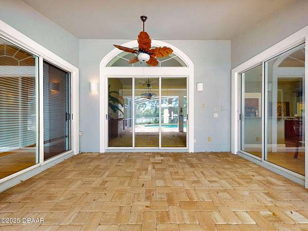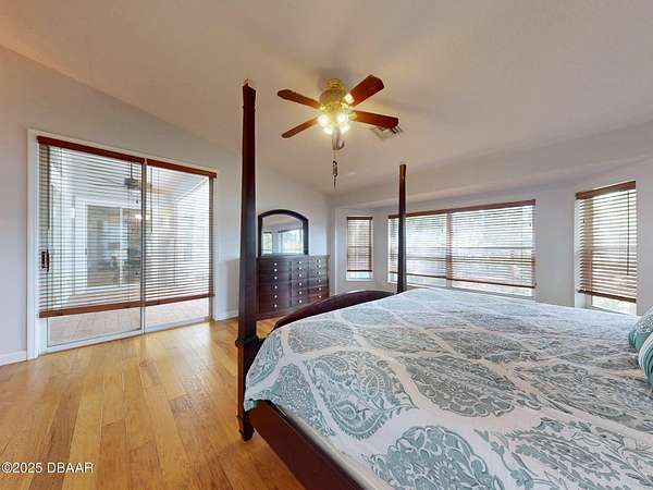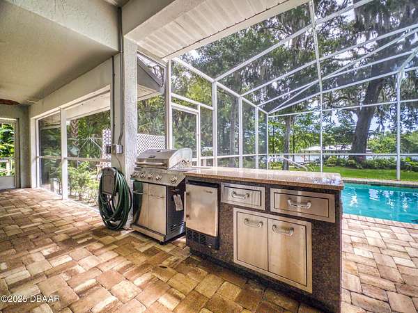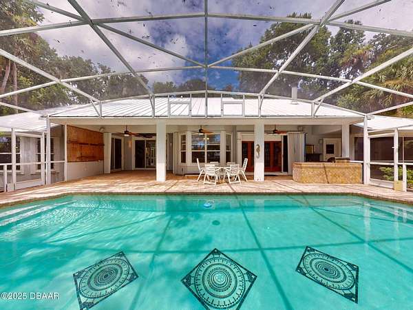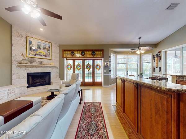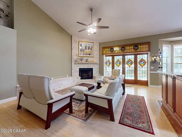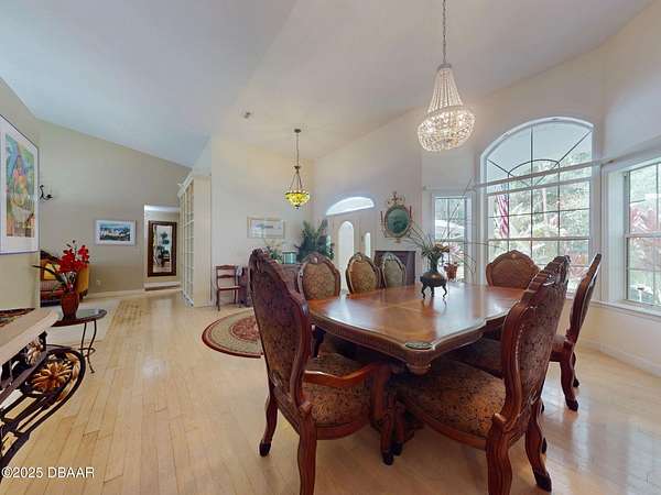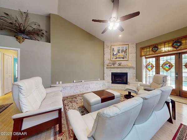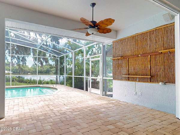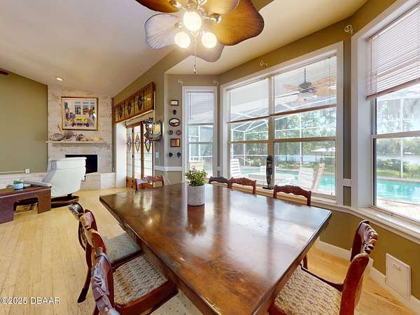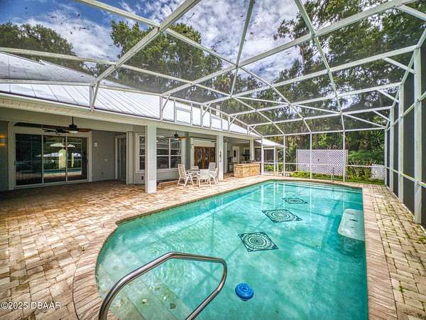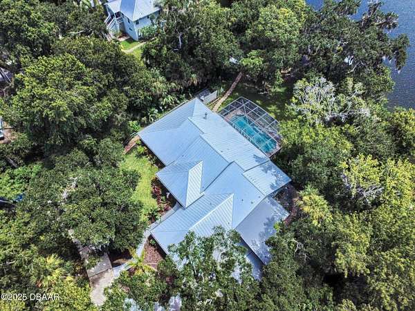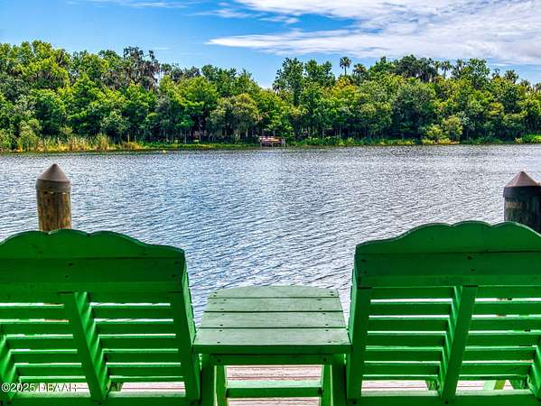 Beautiful 4 bedroom, 3 and a half bath, lakefront, pool home located in the highly desired gated community of Lake Waterford Estates in New Smyrna Beach. Lake Waterford is a 75 acre, spring fed lake perfect for boating, skiing, fishing and a number of other water sports. This spacious home sits on a 1.75 acre lot which is lush with a variety of mature trees, fruit trees and beautiful flora. Enter this home through the welcoming foyer where the eye is immediately drawn to the serene view of the tranquil lake in your own backyard. This home was designed for entertaining with a distinguished formal dining room and formal living room. The large primary bedroom, with expansive windows, letting in the beautiful views and two individual walk-in closets, will be a welcomed retreat at the end of the day. The ensuite bath comes equipped with double sinks, separate shower and a jetted garden tub. The 3 spacious guestrooms, each with ample closet space and natural light streaming through the windows, are comfortable and inviting. The hub of this amazing home is the open-concept, family room, dining nook and kitchen. This kitchen is a chef's dream with granite counter tops, stainless-steel appliances, gas stove and plenty of storage space. The kitchen opens to a dining nook and family room. As you enter the family room you are drawn to the massive natural stone fireplace. Exit the family room through custom, stained-glass french doors to your sparkling, screened-in pool and classic pavered patio deck. Sit and enjoy your morning coffee as you take in the beauty of life on the lake. Just beyond the pool is a pavered walkway that will lead you down to the boat-house and dock. This durable dock, made of WEARDECK material, is equipped with electricity, water and newer boat lift. What better way to end the day than with a relaxing boat ride or simply sitting on your own dock enjoying the beauty of nature in this breathtaking setting. Other outstanding features of this exquisite home: indoor laundry room with full bath, oversized 3-car garage, whole home diesel-powered generator, outdoor storage sheds, circular driveway, central vacuum system, custom stained-glass lighting and doors, high ceilings and plantation shutters. NEW METAL ROOF 2024. Air Conditioners, Refrigerator and Hot Water Heater new in 2024. The Lake Waterford Estates community amenities include a clubhouse, tennis courts and boat ramp. This sprawling, exquisite home offers the best of Florida living. This property is conveniently located less than 10 miles to the sandy beaches of New Smyrna and about an hour to the Orlando airport. Call today to schedule an appointment to see this truly spectacular and unique home.