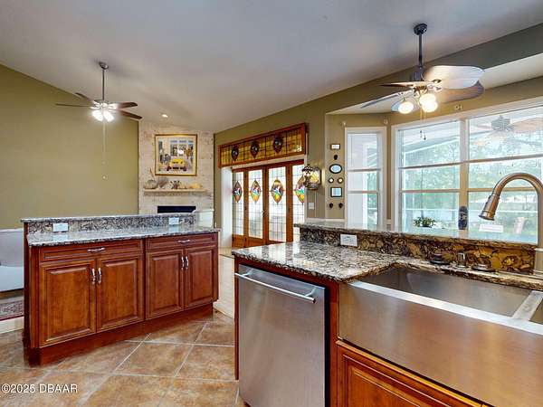 - Ceiling Fan(s), Central Vacuum, Eat-In Kitchen, His and Hers Closets, Kitchen Island, Split Bedrooms, Vaulted Ceiling(s), Walk-In Closet(s)