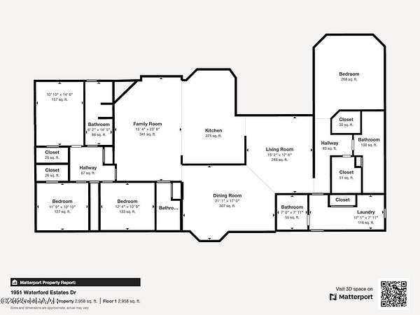 - Bathroom x 4, Bedroom x 4, Dining Room, Family Room, Laundry Room x 2