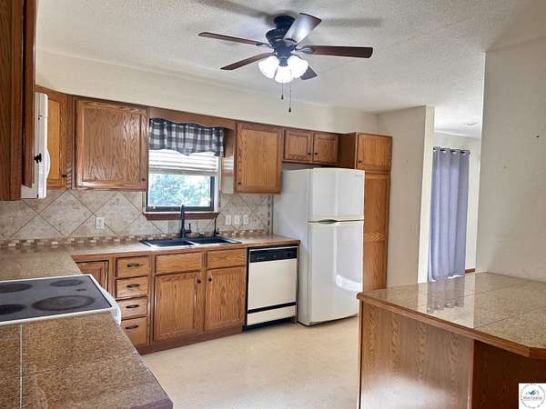 - Built-In Dishwasher, Cabinets Wood, Custom Built Cabinet, Electric Oven/Range, Garage Door Opener 1, Garbage Disposal, Smoke Detector, Water Softener-Owned