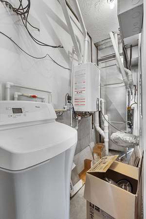 - Built-In Electric Oven, Commercial Grade, Convection Oven, Dishwasher, Disposal, Dryer, Exhaust Fan, Microwave, Propane Cooktop, Refrigerator, Tankless Water Heater, Washer, Water Softener Owned