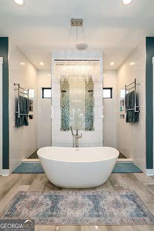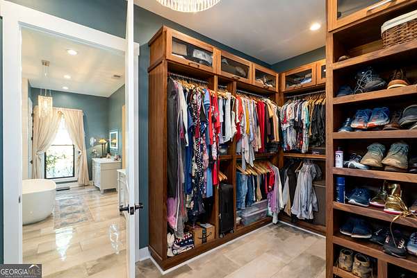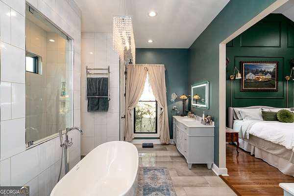 - Bookcases, Double Vanity, High Ceilings, Master On Main Level, Roommate Plan, Separate Shower, Soaking Tub, Tile Bath, Vaulted Ceiling(s), Walk-In Closet(s), Wet Bar