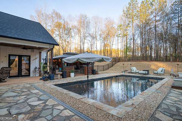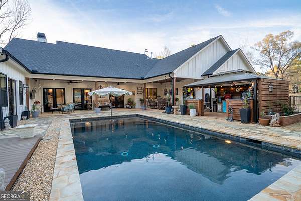 Stunning Ranch Farmhouse on 5 Acres - A True Masterpiece! Welcome to this exceptional 4-bedroom, 3.5-bath ranch farmhouse nestled on 5 expansive acres, blending luxury, comfort, and functionality in every detail. From the moment you pass through the gated entry, the thoughtful design and premium features will captivate you. Exterior Features: * Elegant gated entry with lighting sets the tone for this spectacular estate. * Paved driveway leading to a custom-built brick entry welcomes you home. * Enjoy the ultimate outdoor entertaining experience with a custom BBQ island featuring a pizza oven, BBQ grill, smoker, fridge, water dispenser, cooler, and cigar humidor. * Relax and unwind in the heated 15x30 saltwater pool with a convenient lounge entry. * Flagstone front garden with sprinkler system and pathway lighting creates an inviting ambiance. * Flagstone rear decking and a sun tan deck offer plenty of space to enjoy the outdoors. * Fire pit table with a lounge area is perfect for cozy nights under the stars. * A small pond with a fountain adds serenity and beauty to the landscape. * Aluminum backyard fence with a dog run area keeps pets safe and secure. * Fenced pasture for your animals and large barn for storage. * Three-car garage featuring epoxy flooring, electric heaters, and ceiling space storage. * 250-gallon underground propane tank with gravel road access for easy refueling. * Well-maintained septic tank and well water system with high-end softener and filter tanks. * Back patio with high-end fans, ceiling space heaters, and the convenience of two freezers and an additional fridge. * Ring cameras and a Ring alarm system provide peace of mind with full exterior surveillance. Interior Features: * Spacious and open, this home boasts wood floors throughout common areas, adding warmth and character. * A stunning custom-built gas fireplace surrounded by large bookshelves serves as the heart of the living room. * Energy-efficient custom dual-pane windows flood the home with natural light. * Gorgeous 8-foot custom doors throughout, paired with high ceilings, creating a sense of grandeur. * The master bedroom features a vaulted ceiling and an exquisite ensuite bath with dual vanities, custom dual showers, a free-standing porcelain tub, and dual towel warmers. * Custom-built oak closets provide ample storage, while a medicine closet adds extra convenience. * The spacious laundry room includes a custom dog bath, free-standing utility sink, cabinets with hide-away dog bowl drawers, and additional storage. * The chef's kitchen is a dream, with a 48-inch gas stove featuring six burners, dual ovens, and a griddle. Additional highend stainless steel appliances make cooking and entertaining a breeze. * A 42-inch porcelain kitchen sink and a custom-built pantry add to the kitchen's functionality. * The wine fridge, drink fridge, and coffee station elevate your beverage experience. * A spacious sunroom with direct access to the pool area is ideal for year-round enjoyment. * Accent gallery lighting highlights your favorite artwork, while wainscoting paneling and high-end chandeliers throughout elevate the home's aesthetic. * Cat-5 wiring and a central control station ensure seamless technology integration. * Enjoy a personal office space that is ideal for productivity and focus. * Each bedroom is generously sized, with a second bedroom featuring its own private bathroom, and the third and fourth bedrooms connected by a stylish shared bathroom with floating dual sinks and a walk-in shower. * Custom surround sound wired speakers throughout the rear patio, living room ceiling, and walls provide the perfect sound experience for entertaining. This ranch farmhouse is a rare gem, combining country living with high-end amenities and modern luxury. Whether you're looking to entertain, relax, or enjoy your personal retreat, this home offers it all.