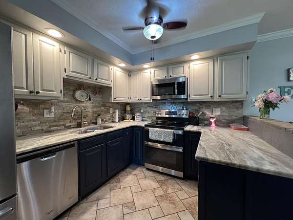 - Ceiling Fan(s), Eat-In Kitchen, In-Law Floorplan, Primary Downstairs