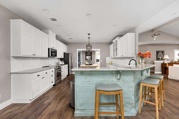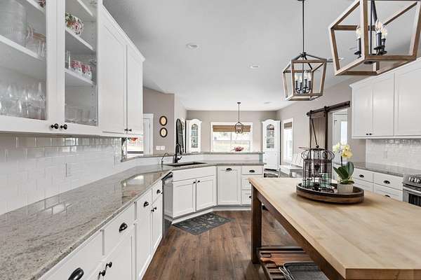 Luxury Hill Country Retreat on 11 Private Acres. 3 bedrooms plus a home office. Behind a private gate and winding drive, this custom 2,909 sqft Hill Country retreat offers refined living just minutes from Burnet. Elevated for scenic views and ultimate privacy, the home blends classic Texas charm with modern design. Inside, cathedral ceilings and expansive windows fill the open-concept living area with natural light. A dramatic corner floor-to-ceiling stone surround fireplace anchors the space, while the gourmet kitchen features gleaming granite counters, stainless appliances, custom cabinetry, deep storage drawers, and a large walk-in pantry ideal for small appliances and prep. The thoughtful layout includes a dedicated home office and a separate flex space perfect as a second office or mudroom. The private owner's suite offers a spa-like bath with a walk-in shower, soaking tub, and dual granite vanities. A split-bedroom design ensures privacy for guests. Outside, an oversized covered patio shaded by mature trees invites quiet mornings and sunset entertaining perfect for summer barbecues. A low-profile fence offers security for pets without blocking views. Additional features include a poured-concrete walkway, 2 car garage attached to house and Shop with 1/2 bath is detached, ideal for hobbies or storage ~ Wildlife exemption keeps taxes low ~ Sale includes adjoining 5-acre raw land (separate legal lot) for expanded privacy, future build, or investment. Total of 11 acres, must be sold together