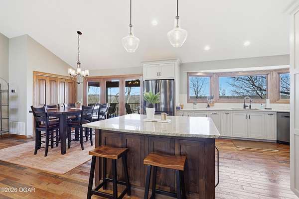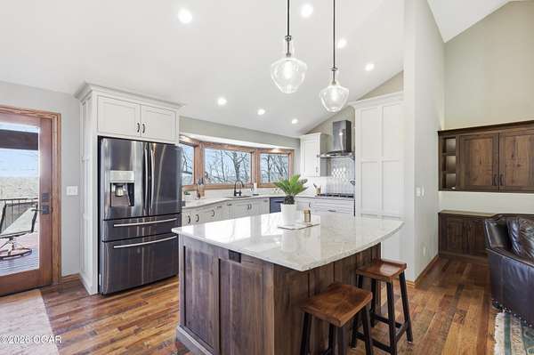 Exquisite home with breathtaking views! This prestigious property is a rare opportunity, showcasing top-of-the-line finishes and custom details you don't see every day. The spacious living room features a stunning floor-to-ceiling stone fireplace and flows seamlessly into the open-concept kitchen and dining area--perfect for entertaining. The expansive primary suite offers two walk-in closets, a luxurious bathroom, and a conveniently connected utility room. A separate sitting room provides the perfect space for a home office or nursery. The basement includes two additional bedrooms, a full bathroom, a large family room, and a fourth bedroom option, with space to add a third full bath. Outside, the meticulously maintained exterior creates a peaceful, retreat-like setting--tucked away in the woods for ultimate privacy and relaxation.