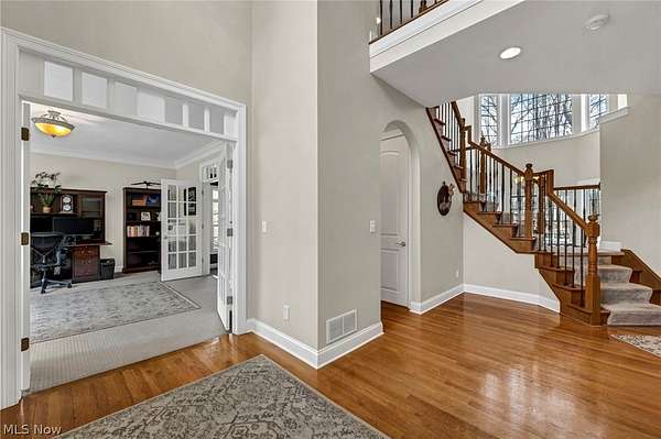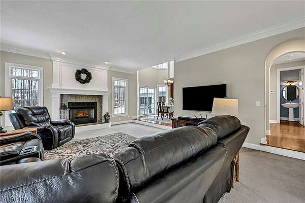 Discover the perfect blend of serene natural beauty and thoughtful luxury in Hinckley's sought-after Stone Ridge Estates. Tucked away on a spacious two-acre lot framed by lush woods in front and behind, this custom-built 2003 colonial offers a private oasis just minutes from the Cleveland MetroParks Hinckley Reservation, ideal for hiking, kayaking, and embracing nature's tranquility. Step inside to a grand two-story foyer that sets the tone for effortless living and entertaining. The open-concept layout flows beautifully from gathering spaces to cozy pockets of quiet retreat, making it easy to host gatherings or simply unwind. The stunning master suite serves as a luxurious private sanctuary, complete with a spa-like primary bathroom featuring dual vanities, a jetted soaking tub beside a gas fireplace, and an expansive walk-in closet. Upstairs and throughout, you'll find generous living space, while the fully finished basement adds exceptional versatility for play, work, or guests. Multiple highways are quickly accessible, offering convenient commutes without sacrificing the peaceful, secluded feel of the neighborhood. This home delivers peace, space, and nature in one wonderful package. Enjoy the expansive backyard surrounded by woods and a sense of calm, where daily life feels like a getaway in a tranquil, private setting. Whether you're seeking room to grow or simply reconnect with nature, this exceptional Hinckley home awaits. Seller is a Real Estate Agent.