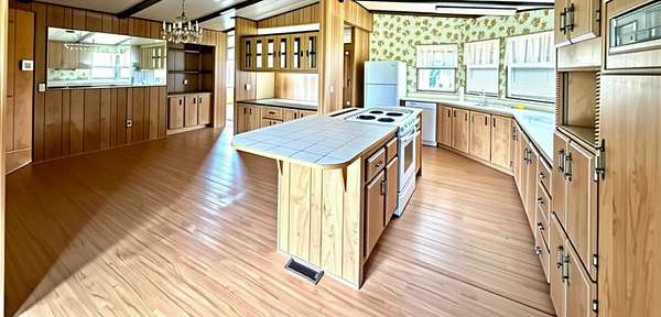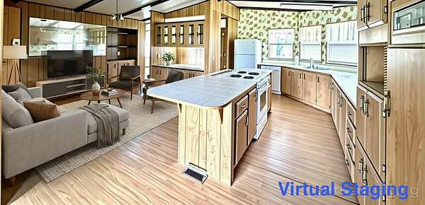 This spacious 1,700 sq. ft. triple-wide manufactured home on Permanent Foundation offers a unique open floor plan featuring 3 bedrooms and 2 bathrooms. Vaulted ceiling. The open-concept kitchen is designed for both functionality and style, complete with a stainless steel downdraft range hood, center island, dining area, and adjacent laundry room. The home also includes a large deck, carport, and bonus room for added flexibility. Situated on over 2 fully fenced acres, the property is thoughtfully equipped for both comfort and versatility. A massive 1,400 sq. ft. shop includes: Two roll-up doors, Air compressor,Dedicated office space.Plenty of room for toys, vehicles, or equipment Attached to the shop is a charming studio/storage/office. Outside, you'll find:A small greenhouse, Garden area ,Cross-fencing for animals, including horses, RV parking throughout Enjoy the space for hobbies and animals . This truly is a one-of-a-kind opportunity! Must see.