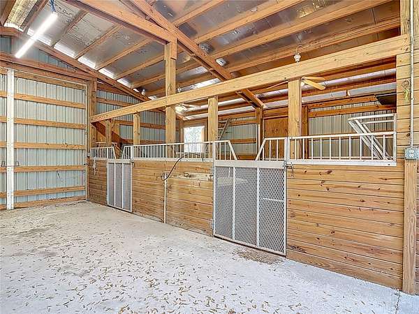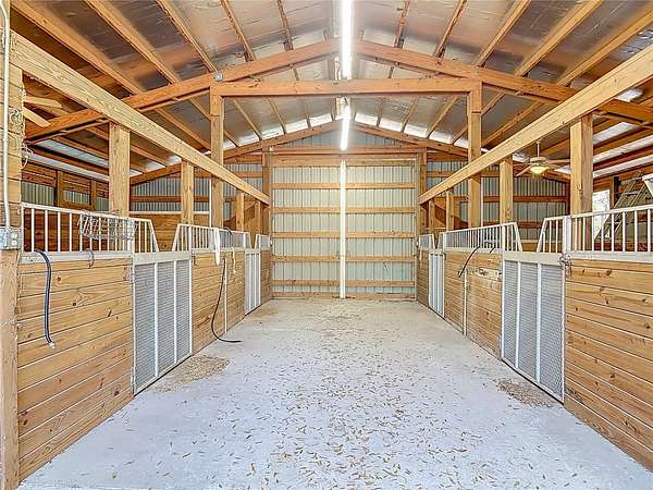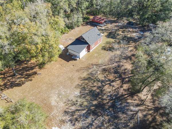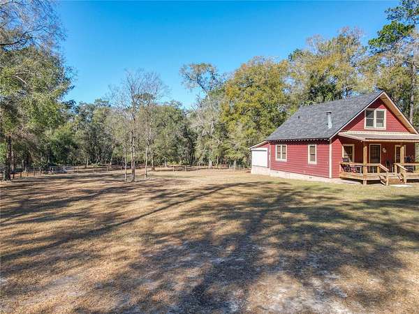 Nestled on 2.5 beautifully private acres, this one-of-a-kind equestrian retreat is a horse lover’s dream! Backing directly to the breathtaking Ocala National Forest, you’ll enjoy access to thousands of acres of scenic riding trails right from your backyard. If you’ve been searching for peace, privacy, and room to roam, this is it. The charming cottage-style home offers a warm and inviting layout. Downstairs features a living and dining room combination, a functional kitchen, and a full bedroom and bathroom. Upstairs you’ll find an additional bedroom, full bathroom, and loft area—perfect for guests, a home office, or extra lounge space. A spacious 20x20 screened patio with roll-up shutters overlooks the property, creating the perfect space to relax after a day on the trails. There is also a dedicated laundry room with washer and dryer hookups. The roof was replaced in 2020, and the home is being sold partially furnished for added convenience. Equestrians will appreciate the well-equipped 4-stall barn featuring a concrete center aisle, storage room, tool room, and a bathroom with shower—ideal for long days spent riding and caring for your horses. The property is tucked away in a serene setting and accessed by an ingress and egress easement, offering exceptional privacy. Located just minutes from Rocking Horse Stables, this property combines the best of quiet country living with easy access to premier riding facilities. Opportunities like this are rare—schedule your private tour today and experience true Florida equestrian living at its finest!