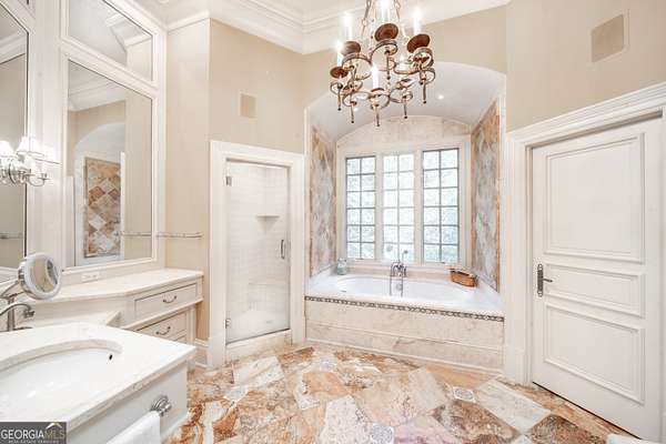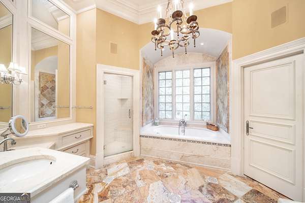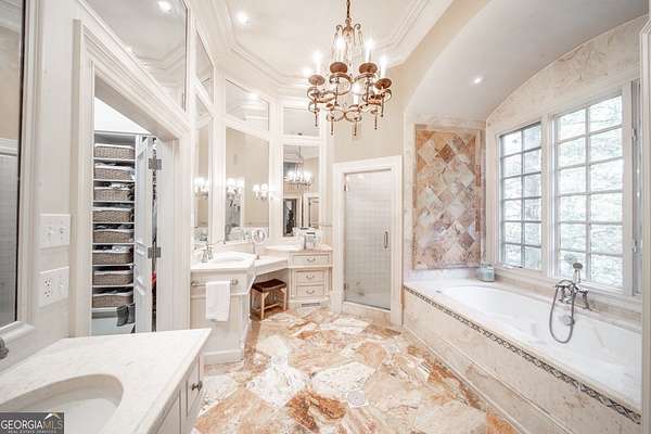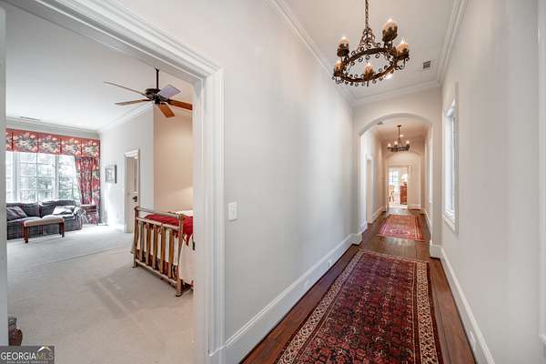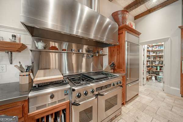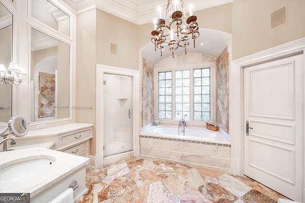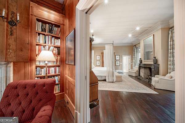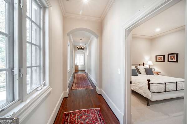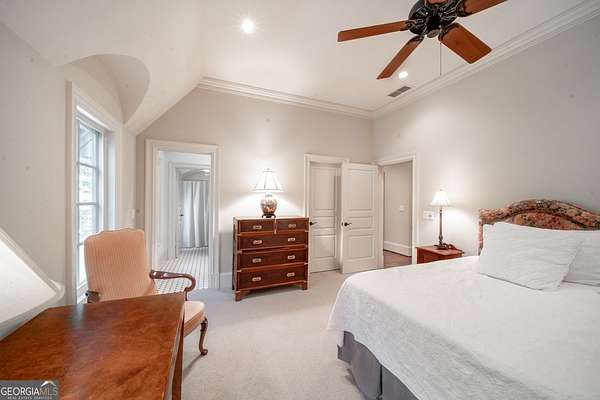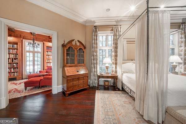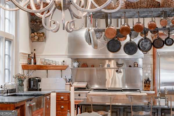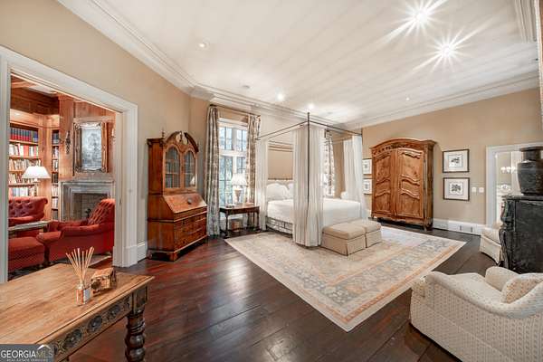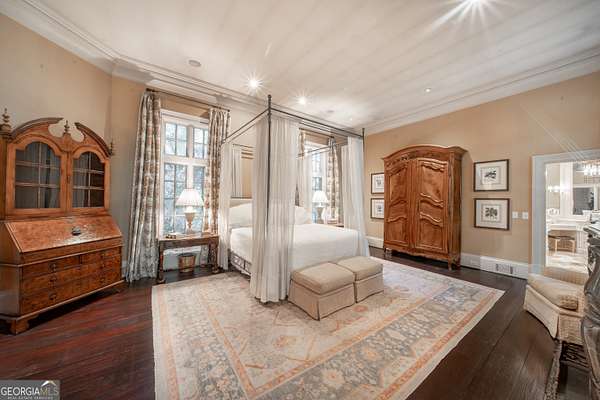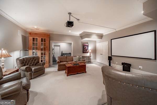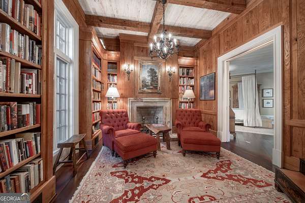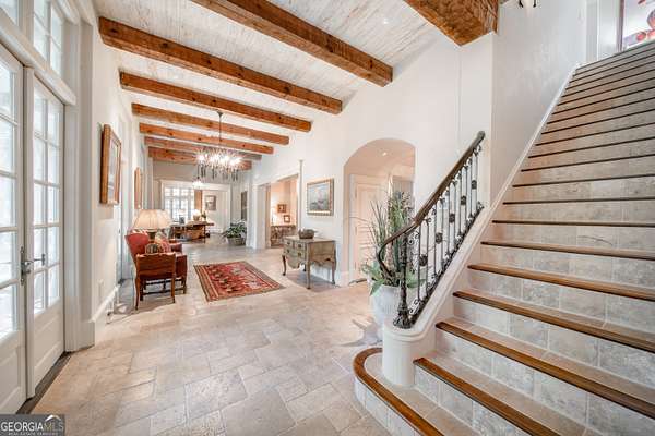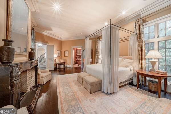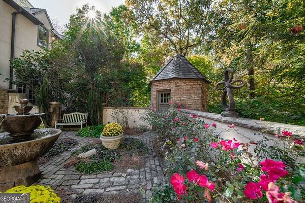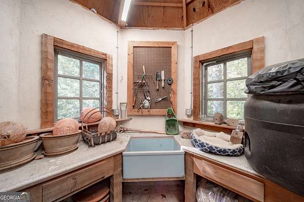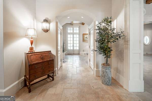 Welcome to Corbett Manor, an extraordinary 112-acre estate where refined luxury and natural beauty exist in perfect harmony. Just five minutes from downtown Clarkesville, this remarkable property offers an elevated lifestyle surrounded by private hardwood forests and impeccably maintained grounds. The stately exterior showcases timeless craftsmanship with a sophisticated blend of stone, brick, and hard-coat stucco, complemented by a slate roof and copper gutters. Through grand mahogany doors, the foyer welcomes you with Italian limestone flooring and soaring 13-foot ceilings. Limestone tile and rich heart pine floors flow throughout the main level, while floor-to-ceiling custom windows flood the home with natural light. A Lutron lighting system enhances both ambiance and ease of living. At the heart of the home, the chef's kitchen is designed for both beauty and performance, featuring commercial-grade appliances including dual Sub-Zero refrigerators and freezers, custom heart pine cabinetry, a DACOR dual-fuel range with double ovens, stainless steel hood, and a Gaggenau pizza oven. Granite and butcher-block countertops, an oversized island with prep sink, two dishwashers, and a limestone farmhouse sink complete the space. Adjacent, a cozy sitting area with heated floors, fireplace, and wet bar invites relaxed gatherings. The kitchen and dining area, seating ten overlook the private "secret garden"-a manicured courtyard with fountain, potting room, and built-in grill ideal for entertaining and alfresco dining. The primary suite is a serene retreat featuring a sitting area with fireplace and imported French marble mantel, a spa-inspired bath with heated floors, Jacuzzi tub, steam shower, custom dual-sided walk-in closet, and a private screened balcony. Just beyond, the library offers wormy chestnut paneling and a cozy fireplace. The second level hosts four spacious bedrooms, each with en-suite baths and walk-in closets. A Juliet balcony overlooks the Great Room with custom wood beams and soaring 26-foot vaulted ceilings. This level also includes a craft room and a private bedroom with bonus space and separate access above the three-car garage ideal for guests or a live-in nanny. Designed for entertaining, the terrace level features a game room with billiards, dry bar, fireplace, home theater, fitness room, and full bath, along with a generously sized laundry room, mudroom, and direct access to the property's dog run. Outdoor living spaces include a screened porch with bluestone flooring, expansive rear balcony, and courtyard cooking area, while imported antique French iron railings add old-world charm throughout. Additional features include a walk-in pantry, custom cabinetry, upgraded security system, abundant storage, and a beautifully gated entry. Corbett Manor is a rare sanctuary of timeless elegance, comfort, and thoughtful design offering an unparalleled luxury lifestyle in a truly remarkable setting.
