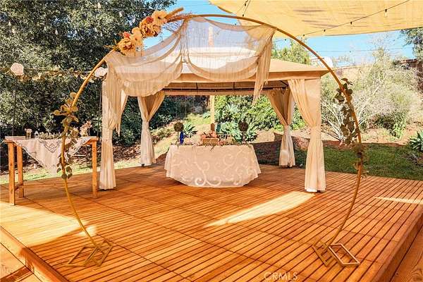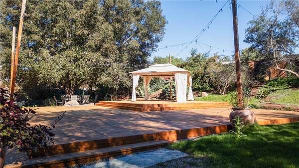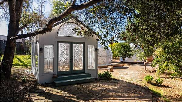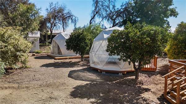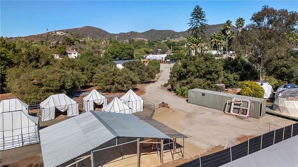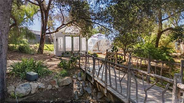Discover the perfect blend of country charm and versatile living at this ranch-style home situated on 4.5 acres of fully usable land in the unincorporated area of Vista. The property offers endless opportunities for horses, hobbies, private events, or even weddings and gatherings in a serene park-like setting. This single-story home features 3 bedrooms and 2 bathrooms, a gated driveway, and ample parking for RVs, boats, trailers, and guests. An oversized detached two-car garage provides additional space for storage or a workshop. A seasonal natural creek runs through the property, adding to its peaceful atmosphere and charm. Enjoy outdoor amenities such as an above-ground hot tub with surrounding deck, an exterior sauna (ready to be hooked up), and outdoor restroom facilities ideal for private parties or groundskeepers. The property also includes an outbuilding--perfect for a greenhouse, art studio, or your creative vision--as well as a corral once used for horses. Currently, the property features geodesic dome tents with deck platforms for unique glamping experiences or private events (not permit structures and are removable).Save in water fees with the functional private well that services the property, providing water for all landscaping and exterior irrigation needs. With its spacious grounds, mature trees, and tranquil surroundings, this property is ideal for entertaining, recreation, or simply enjoying the country lifestyle--just minutes from shopping, dining, and the heart of Vista.