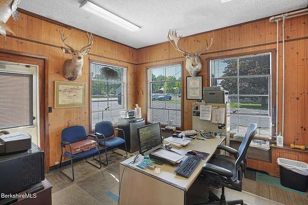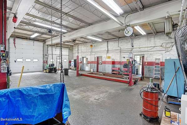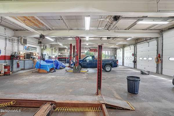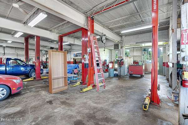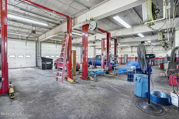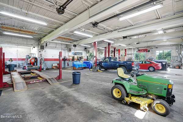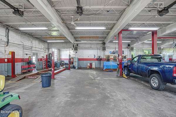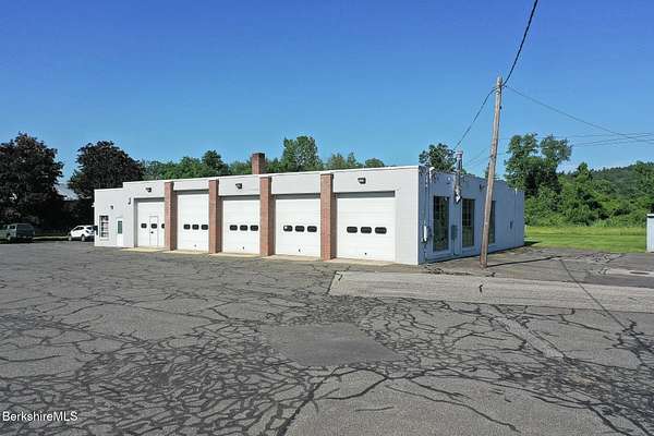 An exceptional commercial opportunity on busy Route 7 at the Sheffield-Great Barrington line, this 7.29-acre property offers over 1,000 feet of frontage and unmatched visibility. Formerly a GMC dealership and auto repair shop, the site includes a 5,540 sq ft garage with five oversized service bays and heavy-duty power-ideal for automotive, fleet, or light industrial use. An additional storage building on-site expands functionality. The expansive paved lot can accommodate over 100 vehicles, making it ideal for dealerships, rentals, or display. The location benefits from steady traffic, close proximity to tri-state area schools & businesses, and easy access to downtown Great Barrington's shops, restaurants, and cultural venues.