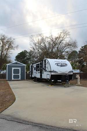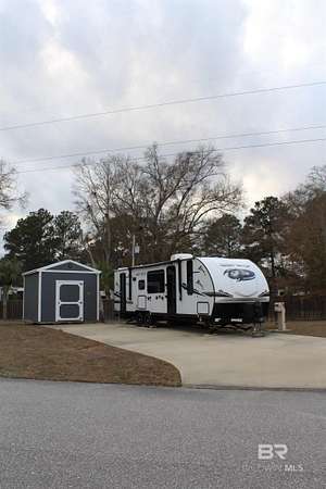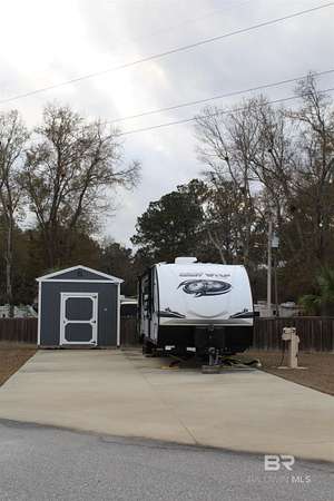 Shaded exterior Lot 7 located in the premier Whispering Pines RV Resort, a beautifully developed community completed in late 2021. This well positioned lot offers evening shade and includes a new 12 ft by 10 ft storage shed. The property is just minutes from Gulf Shores Public Beach, Tanger Outlets, OWA amusement park, The Wharf entertainment district, and a wide selection of restaurants and shopping. The upscale resort features 93 spacious concrete pads, each with individually metered electricity, water, and sewer already installed. Park wide Wi Fi is available, along with a coaxial hookup at every pedestal for cable TV and optional in RV internet setup. Community amenities include clean bathrooms and showers, a laundry facility, a clubhouse with a full kitchen, a walk in style pool, a fenced dog park, and a playground. Easy access from I 10 via Baldwin Beach Express to Foley Beach Express, then west on County Road 8, providing wide roads suitable for any size RV and avoiding city traffic. A 2022 Cherokee Grey Wolf 26DBHBL currently located on the lot may be available for purchase separately or in combination with the lot. Buyer to verify all information during due diligence.