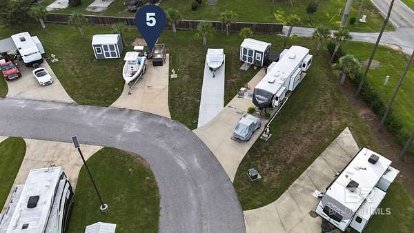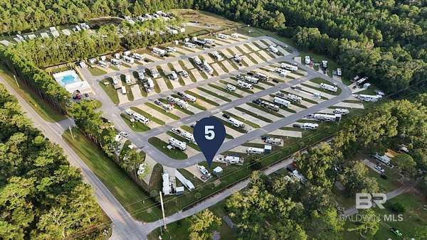 Lot #5 offers a prime location near the front of Whispering Pines RV Resort West with excellent maneuverability and generous space for your RV, boat, or extra vehicles. This easily accessible lot includes a 10 x 12 storage shed that conveys with the property--perfect for storing beach gear, tools, or outdoor equipment.Whispering Pines is an upscale RV resort completed in 2021 featuring 93 large concrete pads, each with separately metered utilities for electricity, water, and sewer. Resort amenities include a resort-style saltwater pool, fenced playground, clubhouse with full kitchen, clean showers and bathrooms, laundry facilities, and high-speed fiber internet with park-wide Wi-Fi and streaming cable.Located just minutes from Gulf Shores Public Beach, OWA Amusement Park, Tanger Outlets, and The Wharf entertainment district, this resort offers comfort and convenience with easy access via Baldwin Beach Express ? Foley Beach Express ? County Road 8. HOA dues of $175 per month include water, sewer, trash, cable/internet, landscaping, pest control, and pool/common-area maintenance. Short-term rentals are permitted. Buyer to verify all information during due diligence.